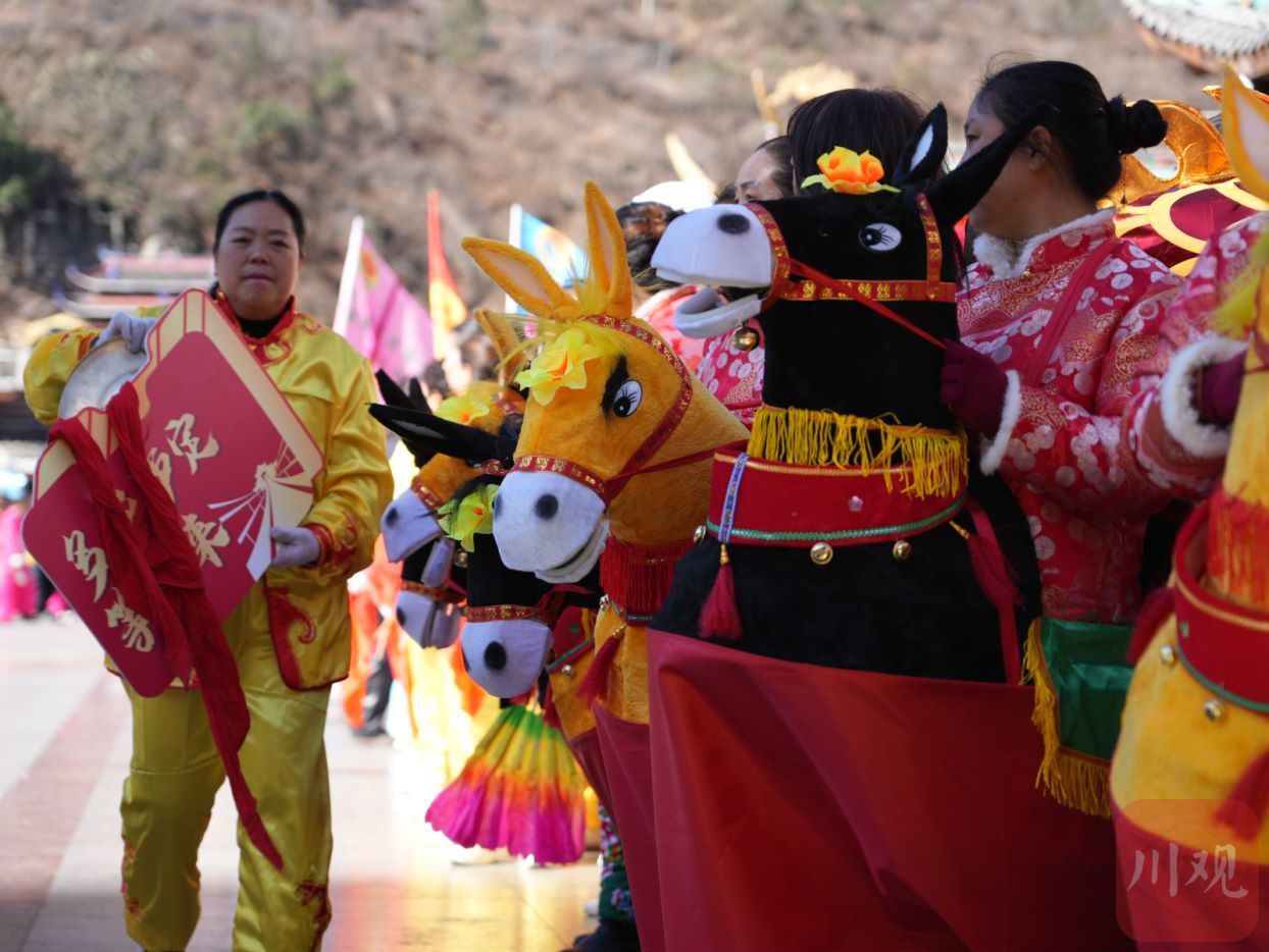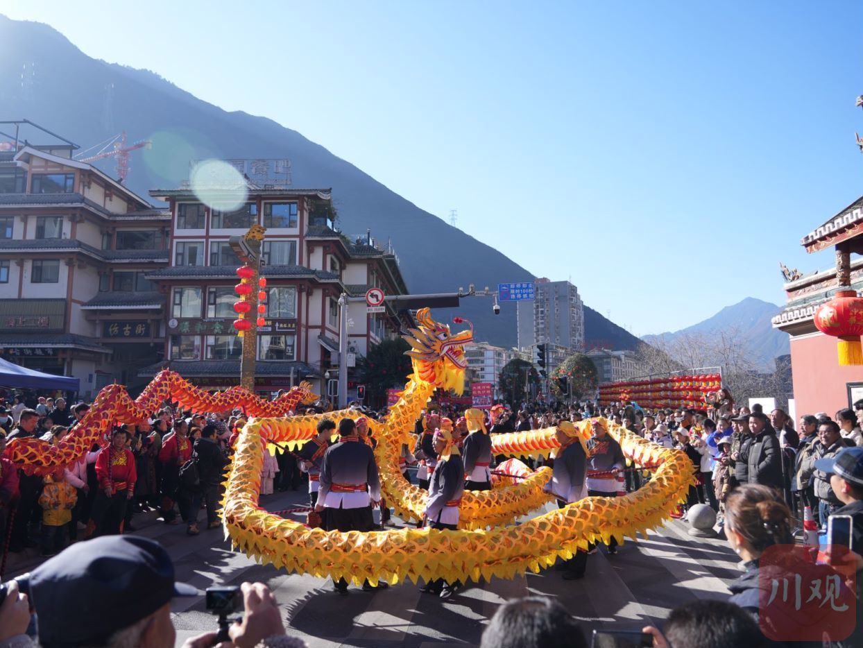 迎新春民俗文化巡游展演活动是泸定县新春文旅活动中的传统项目。2月11日,农历大年初二,以“心系泸定情·建功新时代”为主题的龙年新春民俗巡游活动热闹开演,红色泸定年味十足,处处洋溢着热闹欢乐的节日氛围。