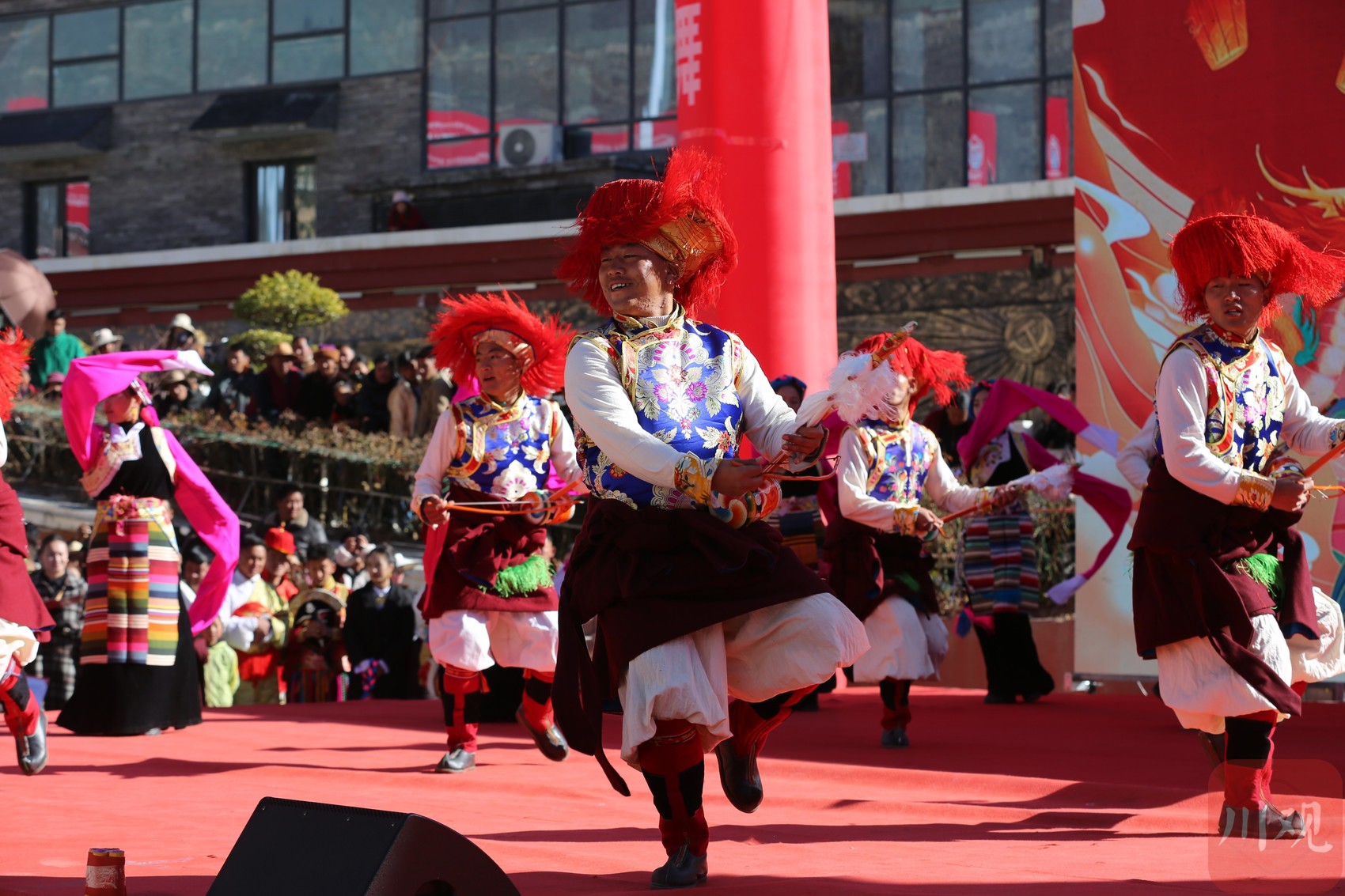 节庆民俗齐欢乐,民族团结庆春来。作为中国民间艺术(弦子)之乡,巴塘也被誉为“藏族歌舞的海洋”。活动在激情四射的舞蹈《北京的金山上》中拉开帷幕,演员们节奏欢快、热情洋溢的表演,表达了人民群众感激之情和对美好生活的向往;“雪山上的红牡丹”巴塘藏戏《曲吉诺桑》片段,唱响来自远古的回响;歌曲《扎西农比普拉》《我的家乡》《知恩的心》唱出社会繁荣昌盛,人民安居乐业;此外,还有原生态弦子展演、弦胡独奏等节目,唤醒“原生态”文化记忆,舞动非遗“活文化”。