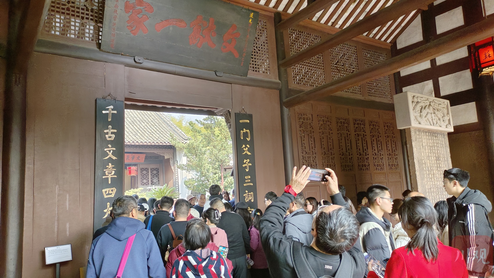 “春节假期以来,祠内游客数量每天都接近万人,团队讲解员都在满负荷运转,至少提前几天才能预约到讲解。”眉山东坡宋城文化旅游发展有限公司总经理叶雷蕾介绍,相比往年春节,今年三苏祠游客接待量翻了一番,从大年初一开始,每位讲解员一天至少要带六七个团。