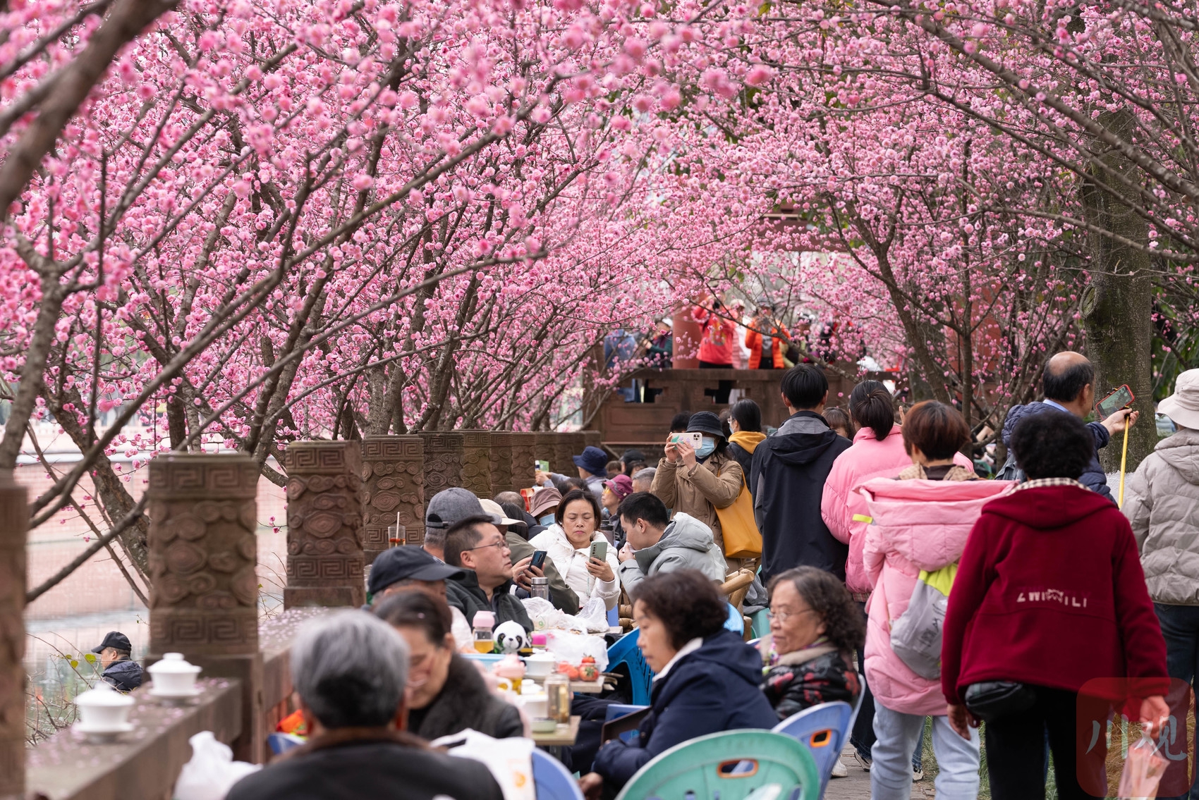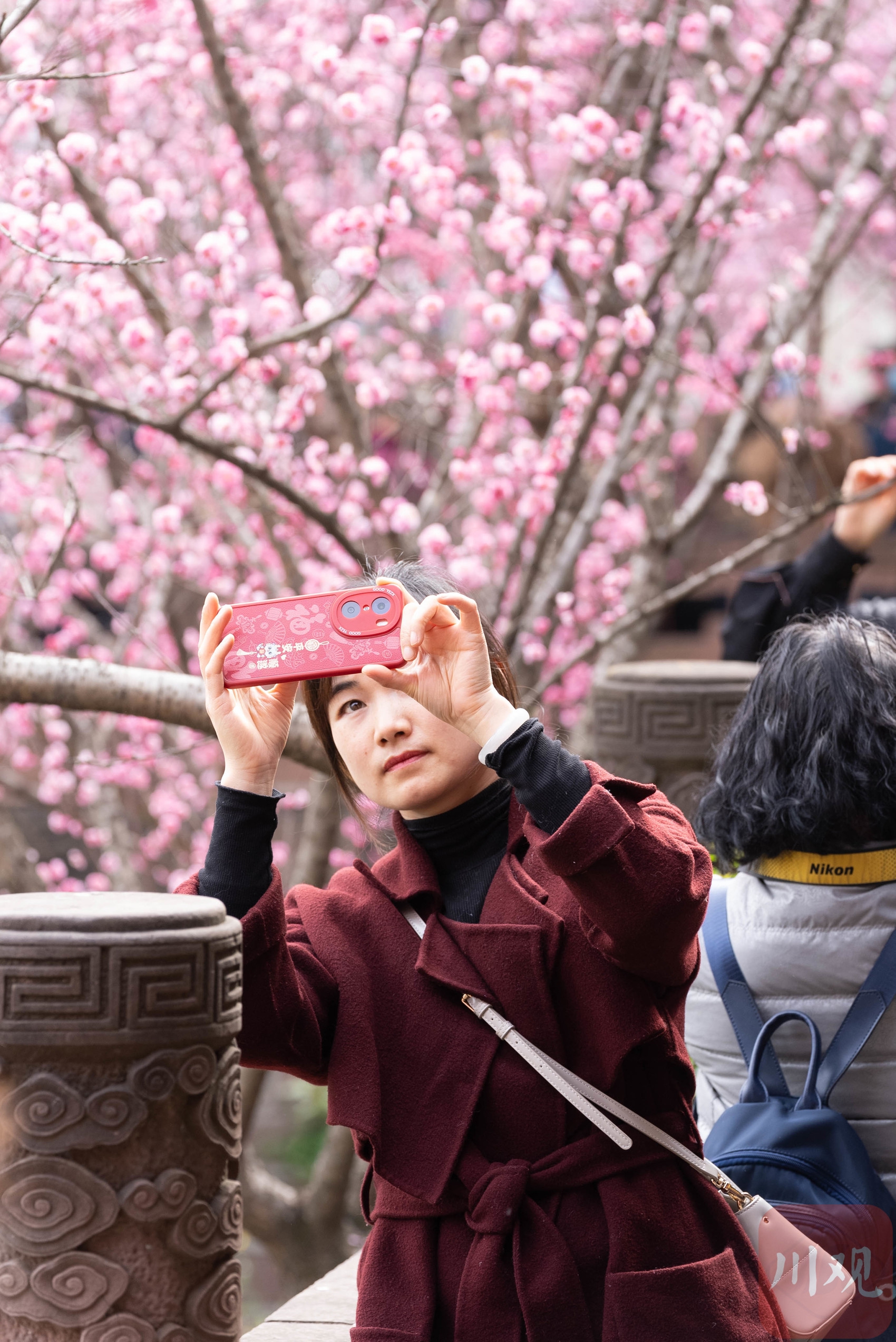 2月15日,春节氛围正好。成都市望江楼公园红梅已然盛放,暖阳早早便挂在粉嫩的枝头。不少市民和家人一起来赏花赏景、喝盖碗茶、晒太阳,恬淡安逸的假日生活其乐融融。