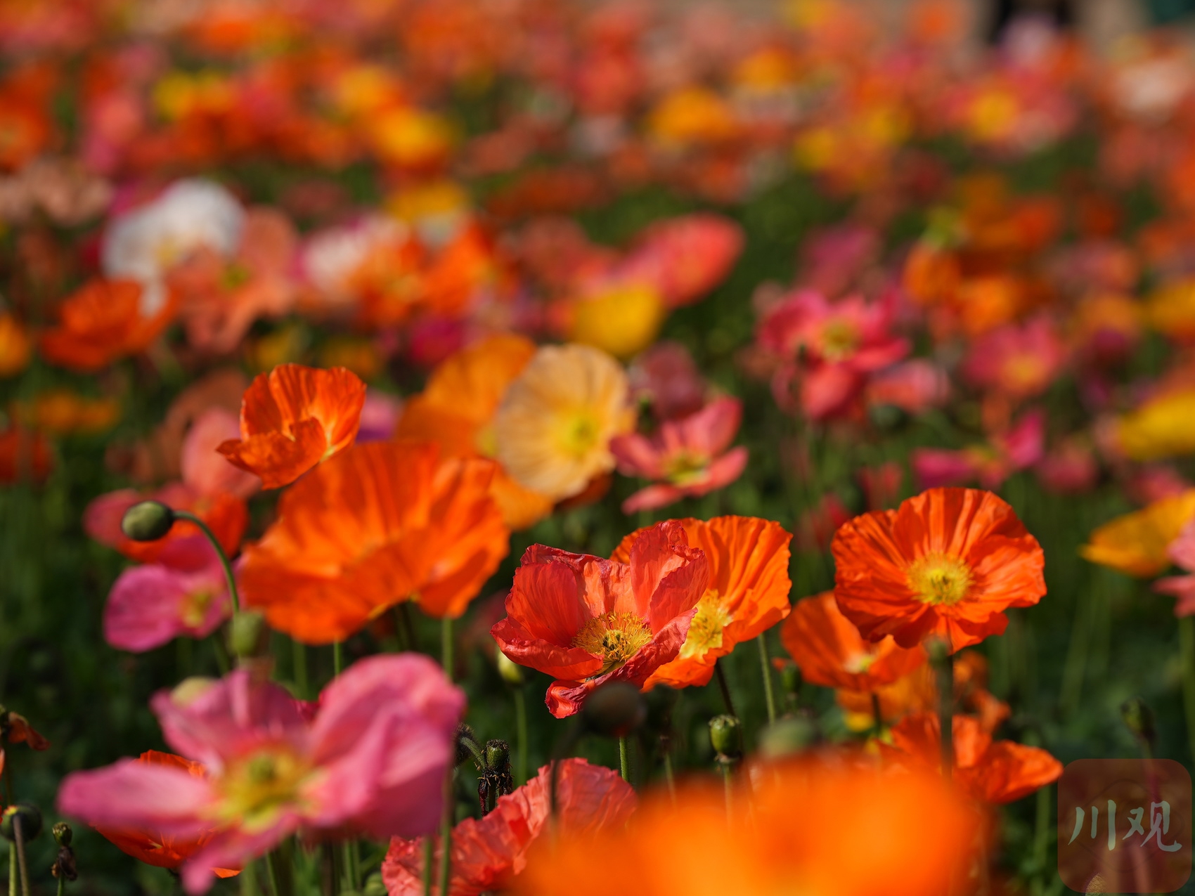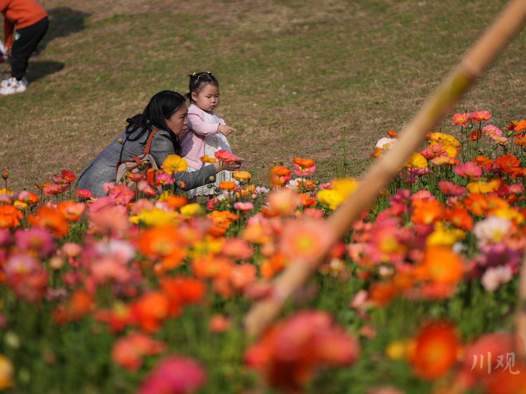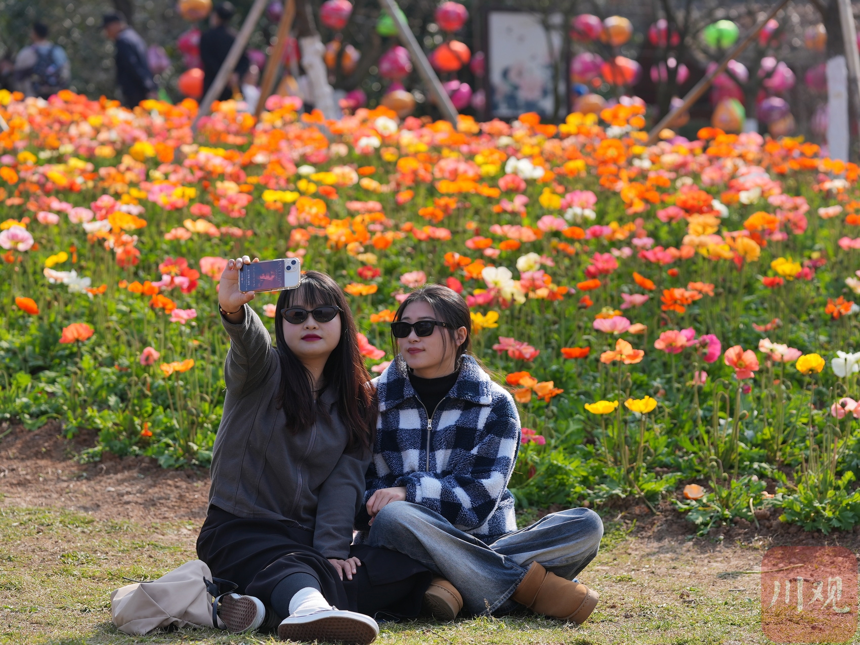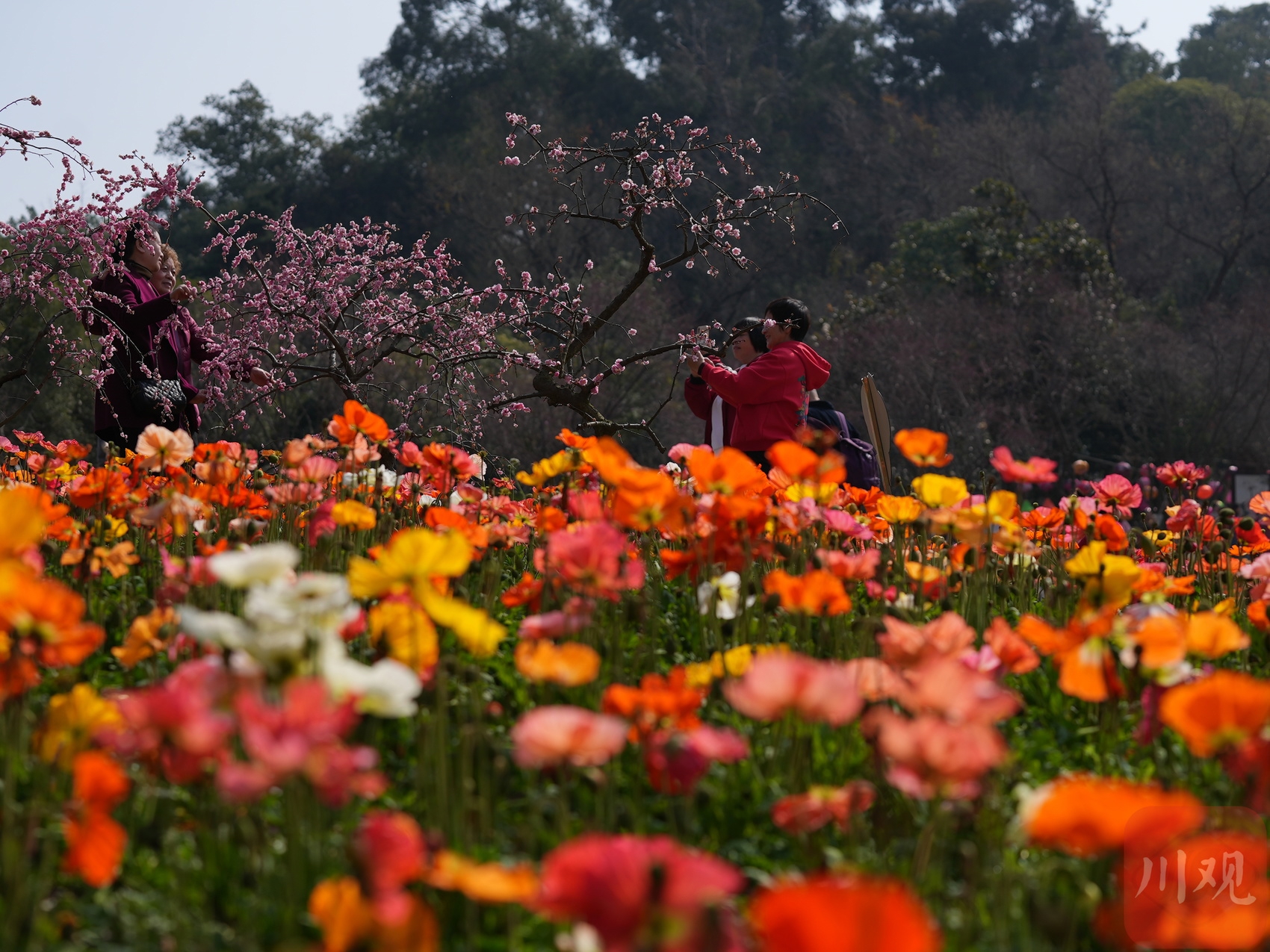 大年初八,成都阳光和煦,成都植物园内,梅花、海棠、桃花、虞美人、樱花等40余个品种的鲜花盛放,春日的气息扑面而来。