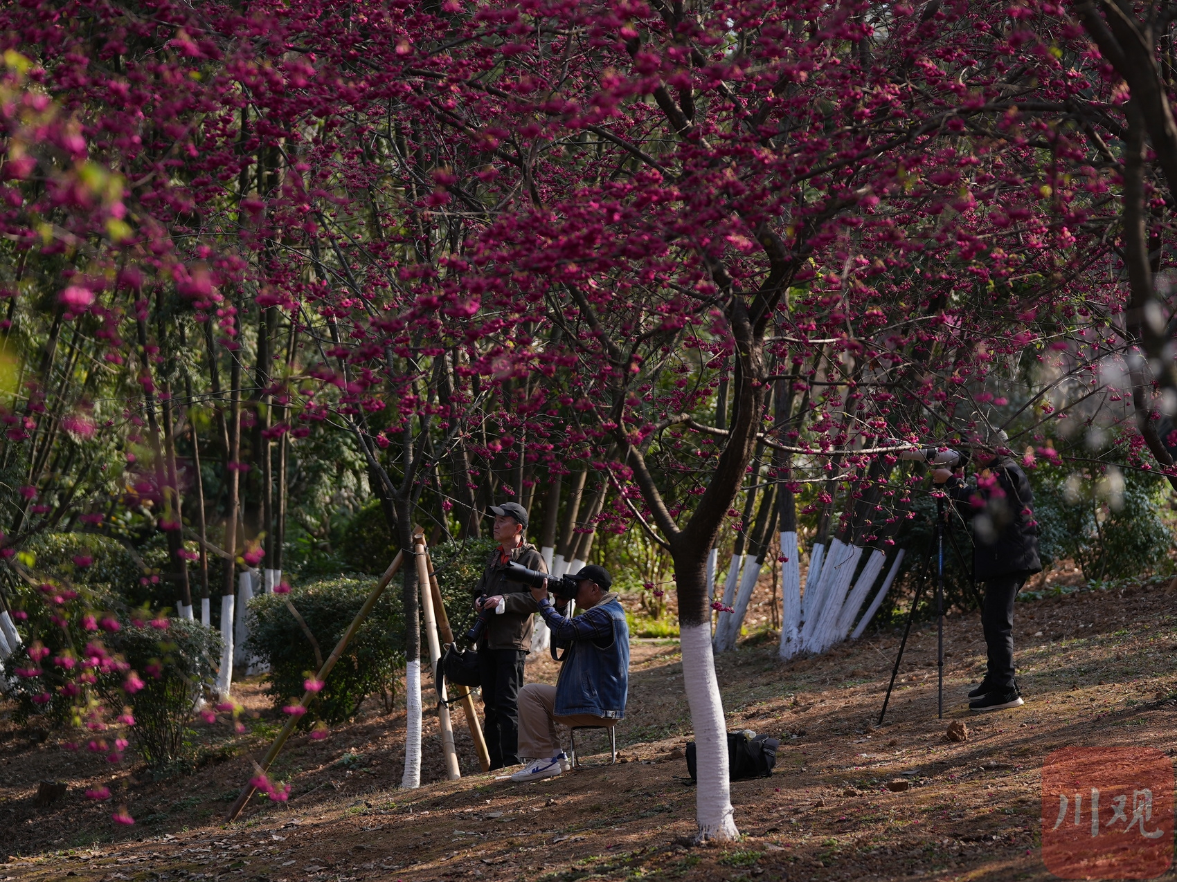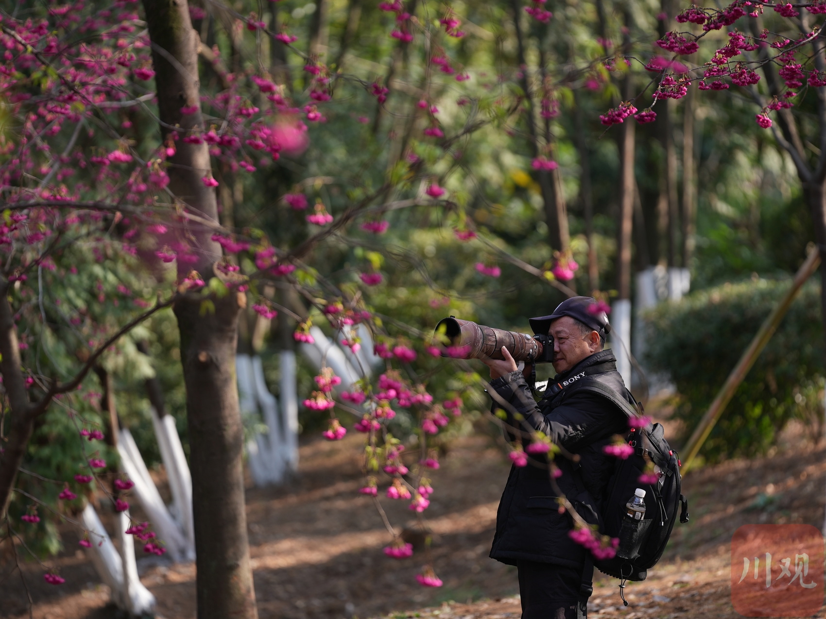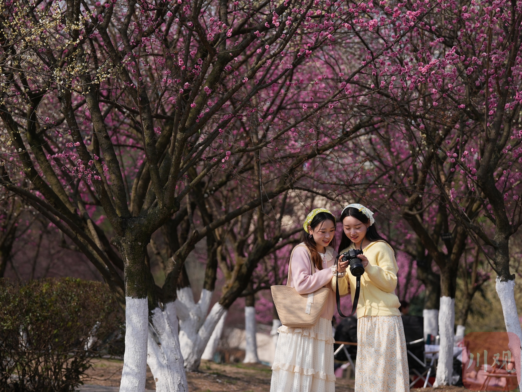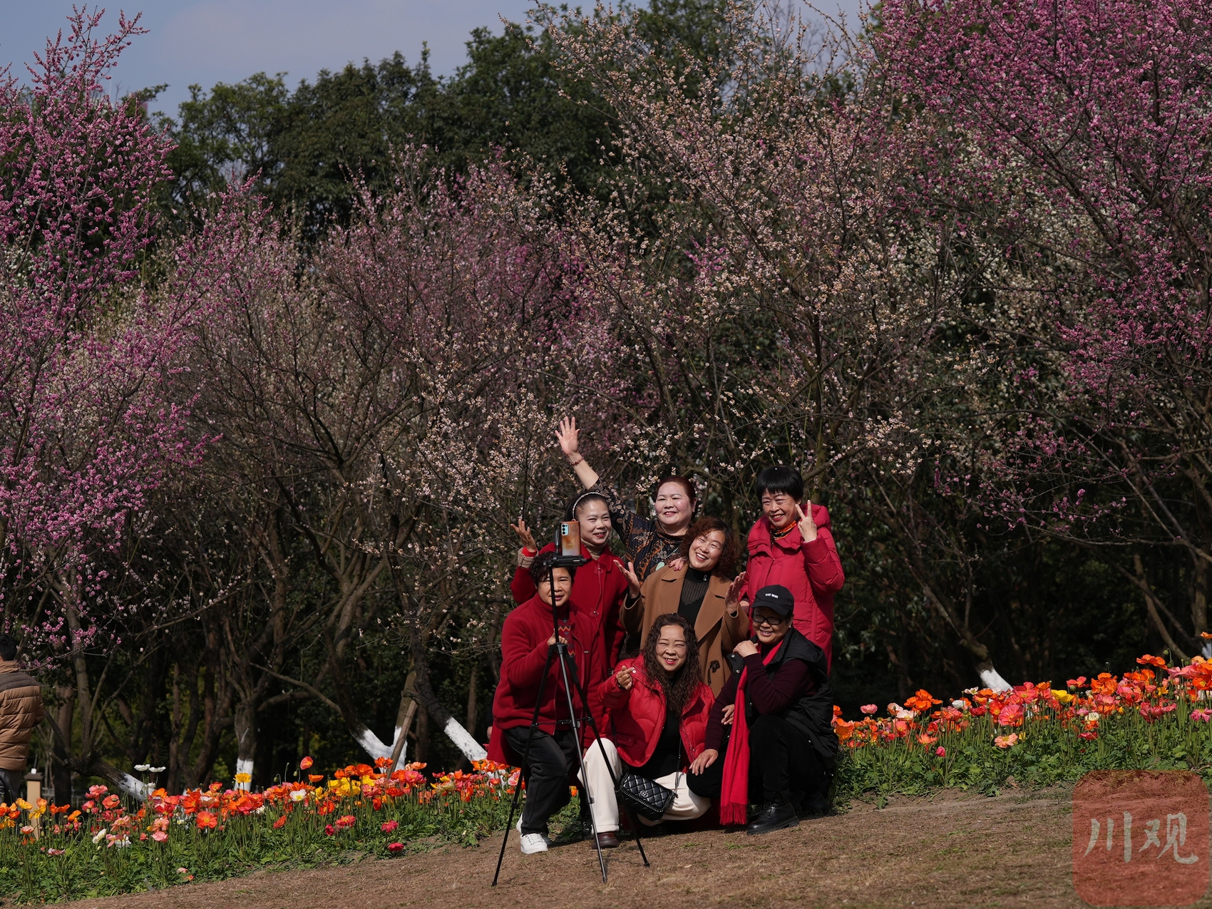 趁着春节假期最后一天,不少市民和游客走出家门,在成都植物园内赏花赏景,近距离感受春天的气息。