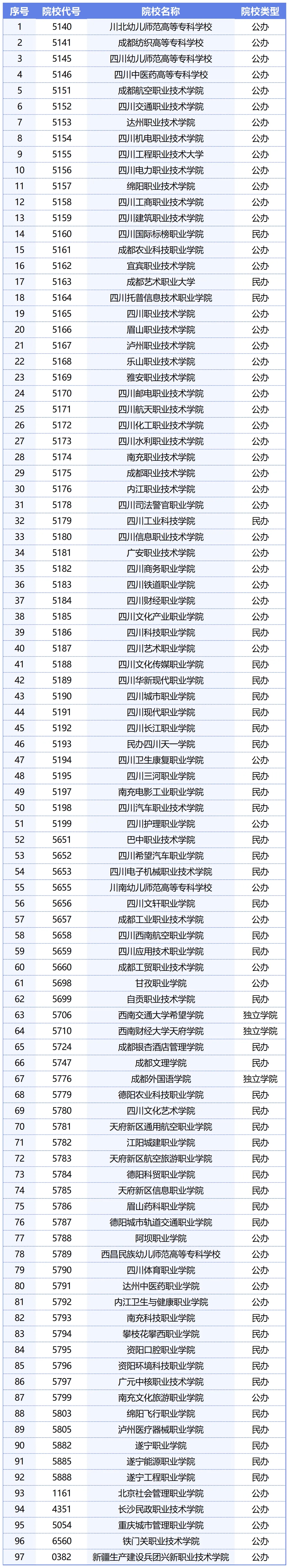 2024年在川招生的高职单招院校共有97所,其中,公办院校52所,民办院校和独立学院45所;从办学层次来看,本科院校9所,高职(专科)院校88所;从办学地域来看,省内院校92所,省外院校5所。
