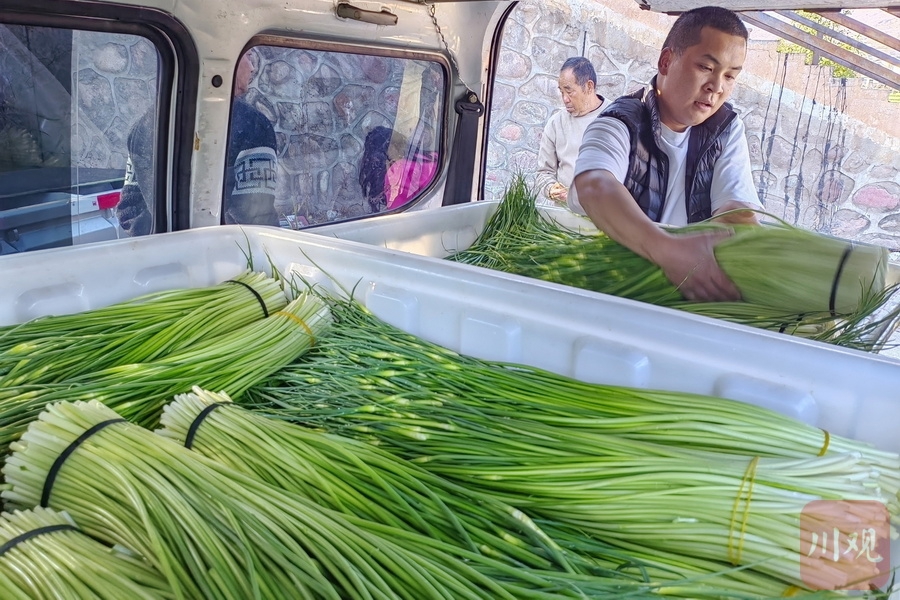 不远处,收购商郭朝斌正忙着将收购的蒜薹装车。“收了20天了,每天收1万斤左右,汉源的蒜苔质量好,拉出去很受欢迎。”
