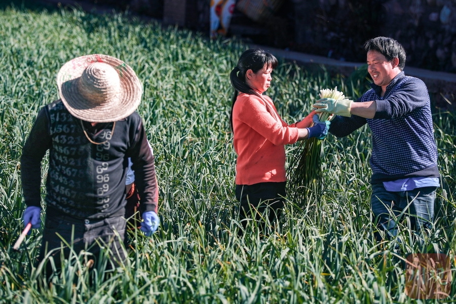 新春伊始,恰逢雅安汉源县蒜薹丰收的时节。2月16日,沐浴着初春的暖阳,雅安市汉源县九襄、前域等乡镇的田间地头里,蒜农们穿梭其中,抽薹、捆扎、装车……到处都是采收蒜薹的忙碌景象。