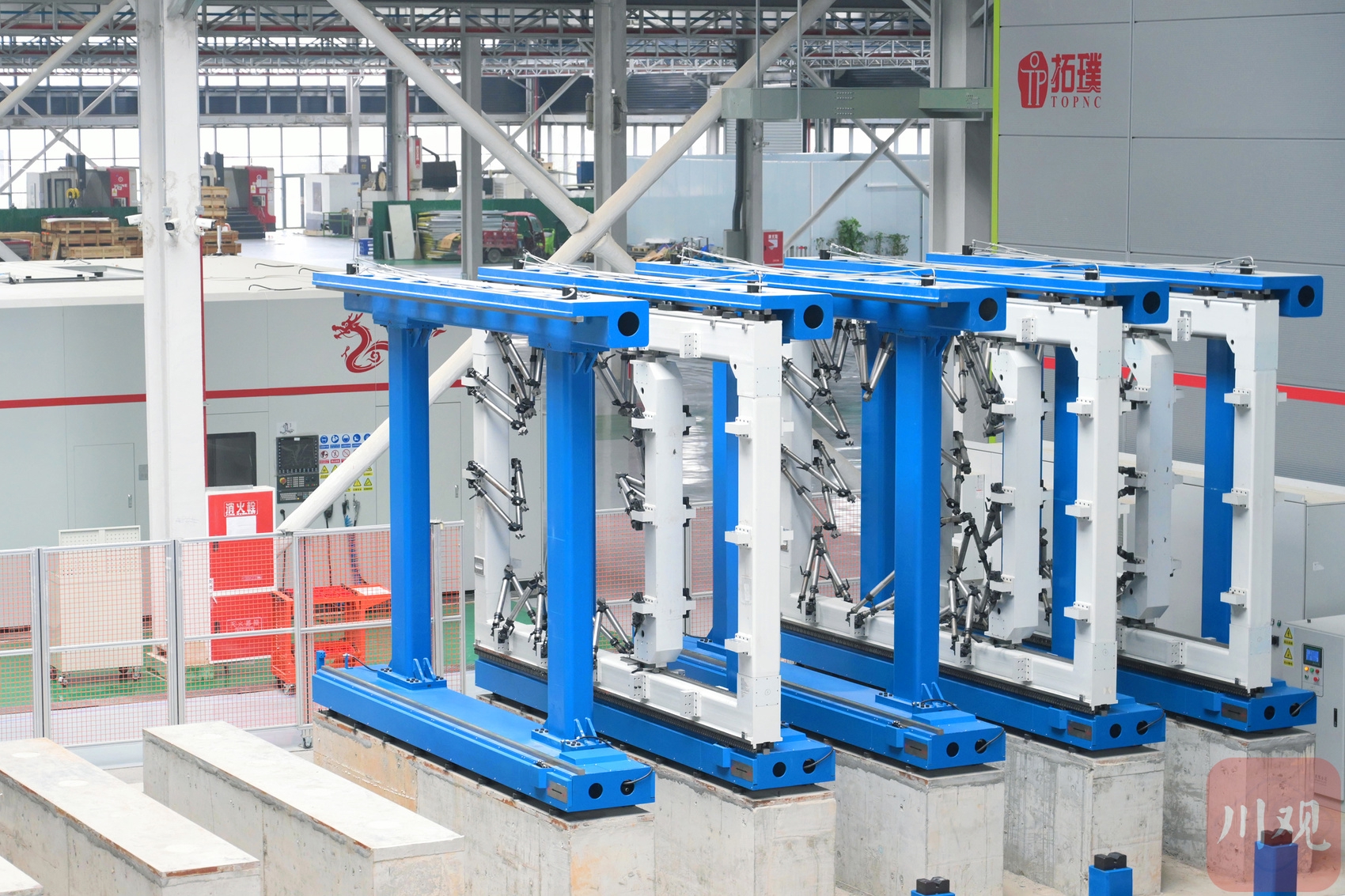 辰飞智匠是新都区智能制造装备产业示范基地的核心企业,公司的“杀手锏”是国产双五轴蒙皮镜像铣产线,有了这条产线,就可以为飞机穿上轻薄的“外衣”。