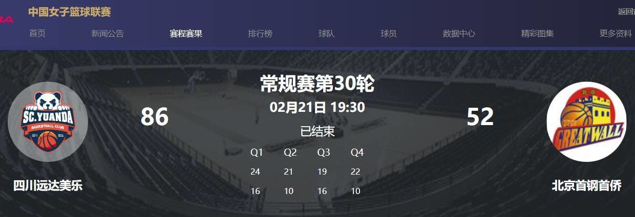 WCBA官网比赛结果图