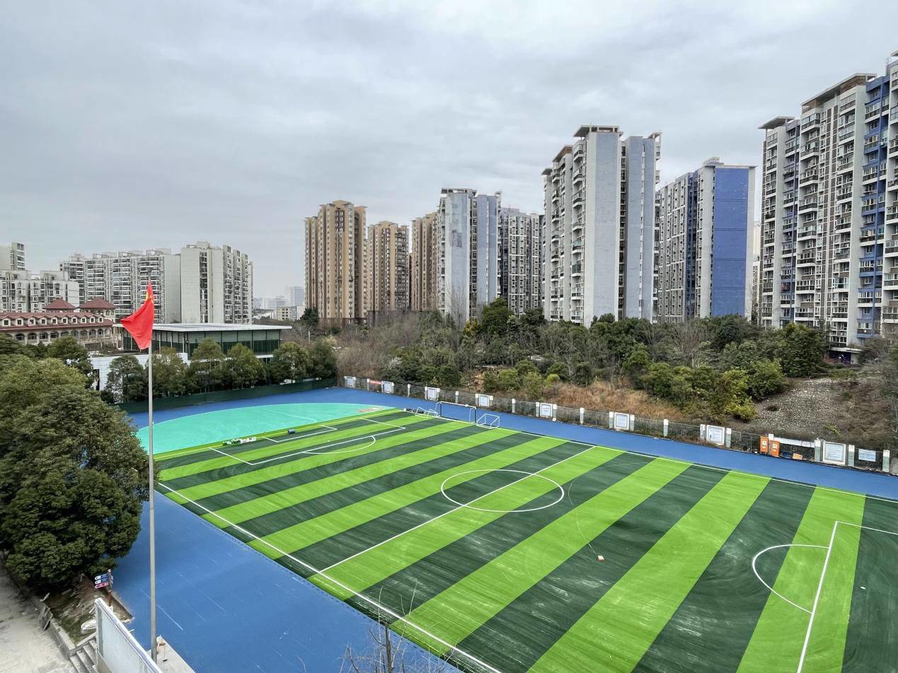 在成都三中,新学期也迎来了新气象。学校操场换上了新装,四百米六道的蓝色塑胶跑道环绕着一个绿茵场,白色线条如五线谱般镶嵌其中,一片生机勃勃的景象。操场的翻修极大地改善了校容校貌,也为全体师生提供了优质的学习生活环境和高质量的活动场所。