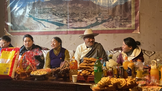 “为了春节的节目表演,我们组提前一个月就开始练习舞蹈”,在巴塘县桃源地巫搬迁点,曲珍正和她的小伙伴们进行上台的最后一次彩排。村级活动室的院坝里大家早早入座,桌子上摆满了各式各样的美食,花茹、冒面、藏式沙琪玛等巴塘传统小吃更是深受欢迎。音乐起,姑娘小伙们踏音而来,水袖下是一张张笑脸。“现在的生活真美好,衣食住行样样好,我的晚年生活很幸福!”仁真翁姆婆婆说到。
