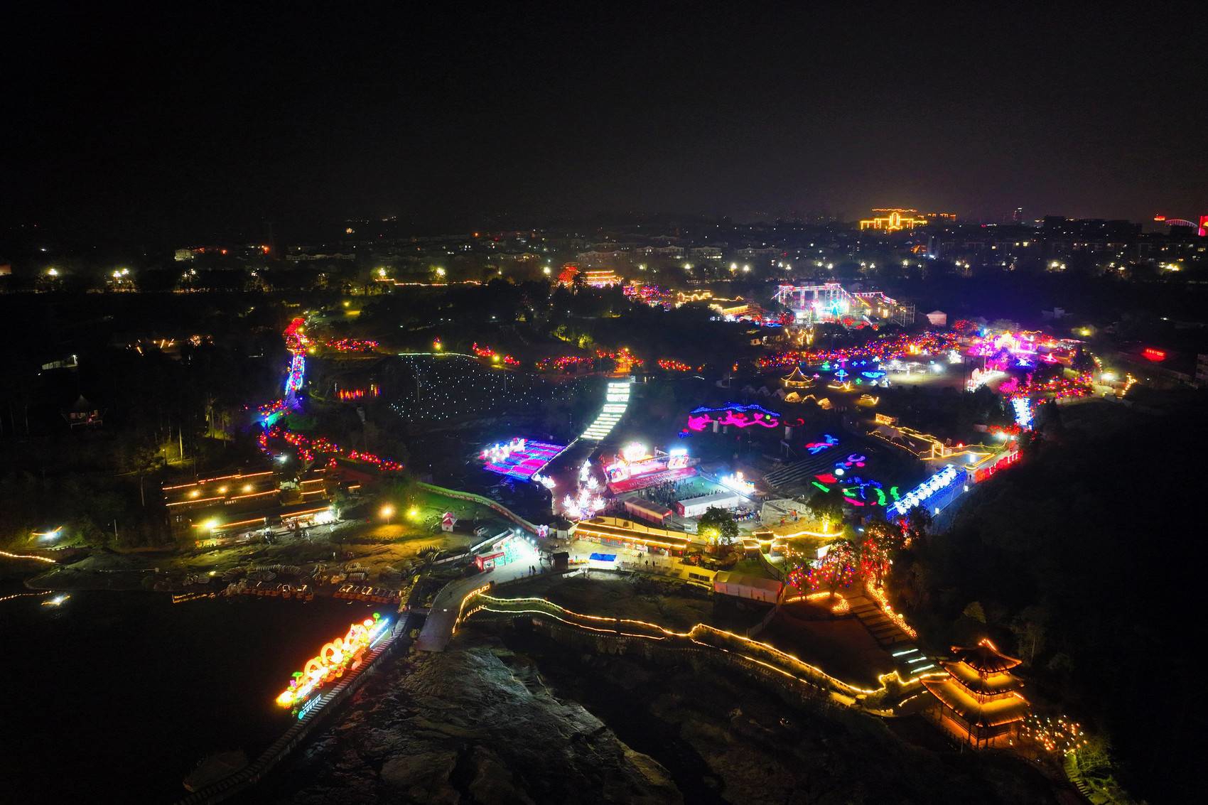 万春桥瀑布霓虹炫彩,流水之上“莲花化龙”……2月19日晚,走进位于广安市广安区的乐活城,一路可见璀璨灯景,不少游客或流连拍照,或即兴高歌,或围着篝火热舞。