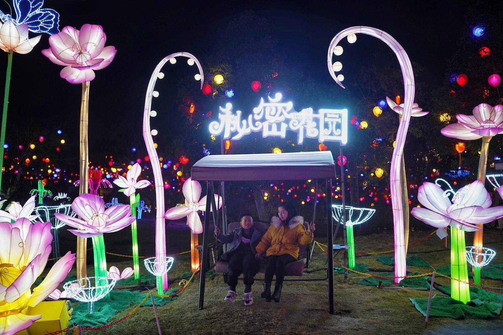 “这个灯会非常漂亮,里面布置的秋千、年夜饭场景、油纸伞等,非常适合拍照打卡和亲子互动。”常年在外务工的李秋华特地带着家人来看灯会,“灯光装点下,广安这座城市也越来越美丽。”