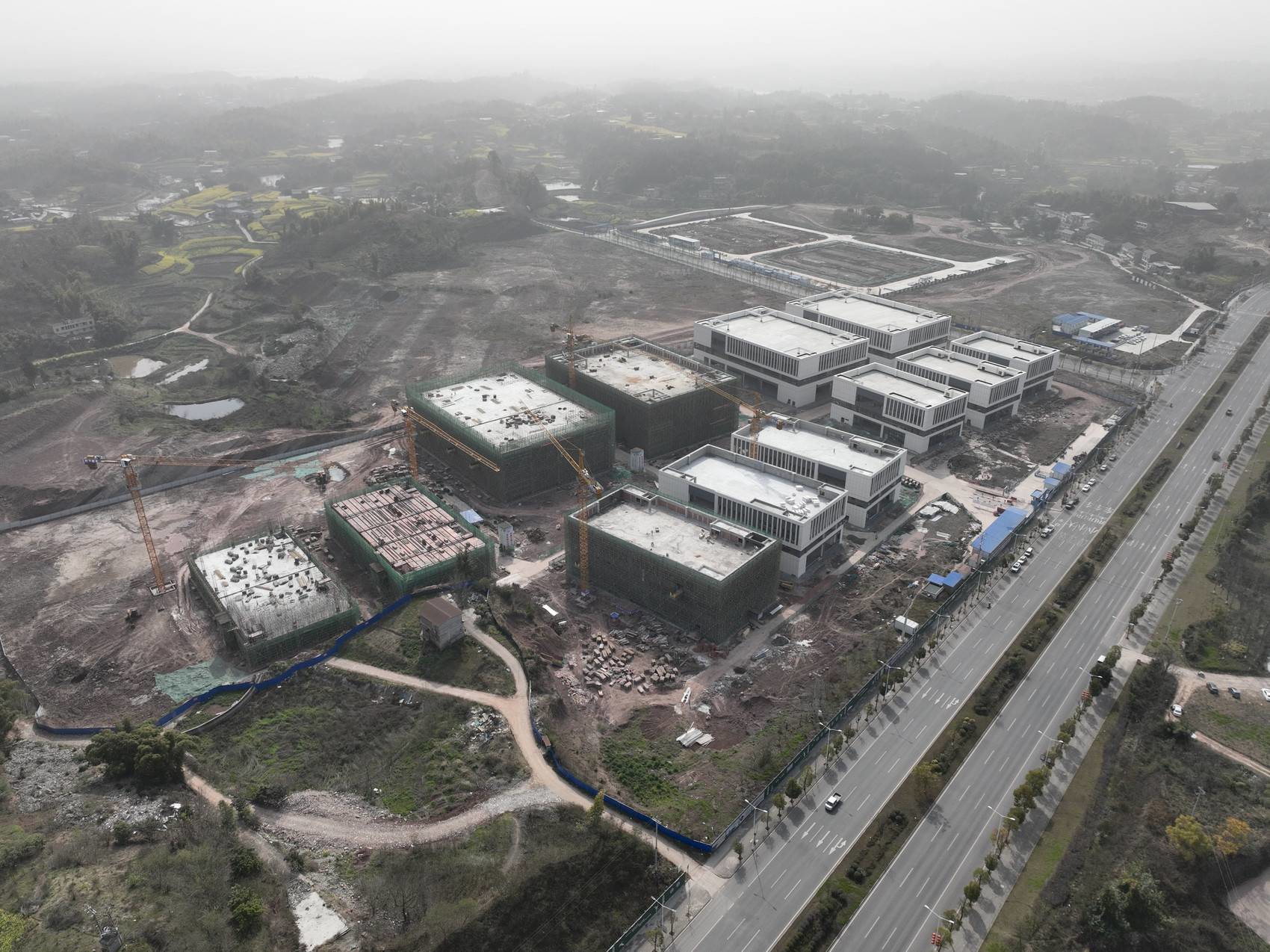 四川富顺晨光经开区跨江新区建设现场。