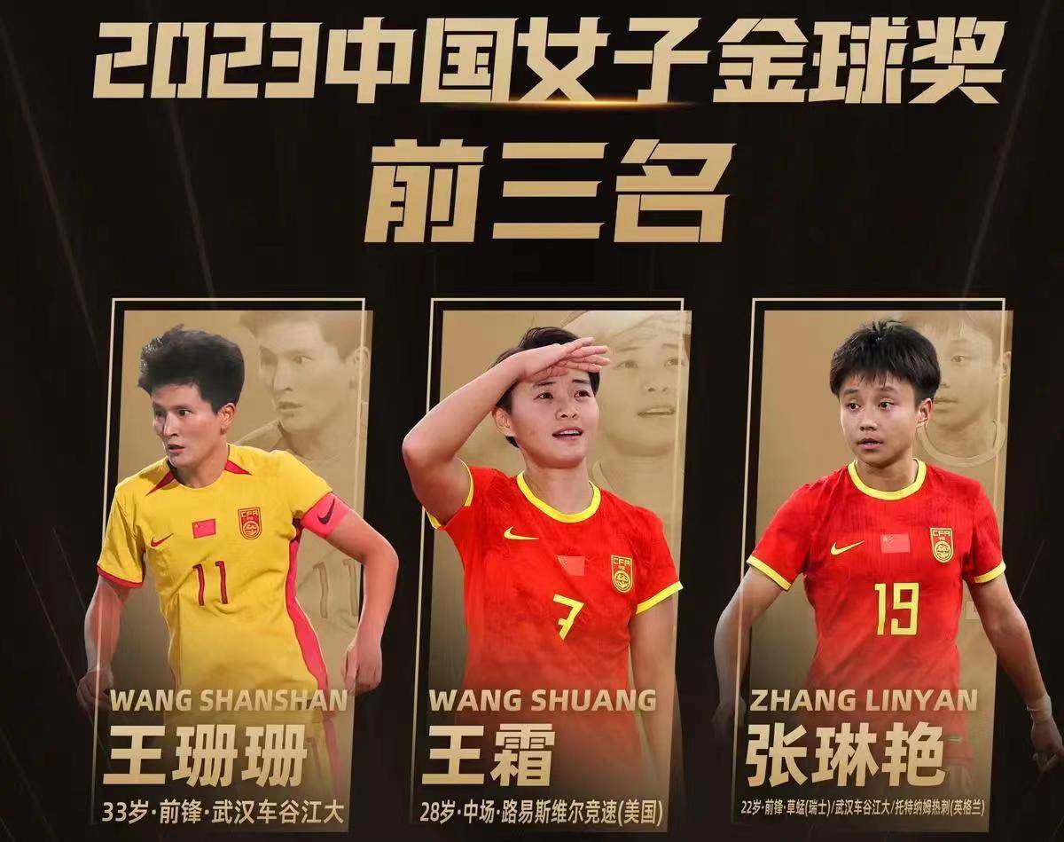 王珊珊、王霜、张琳艳为2023年中国女子金球奖3名候选人,最终,江油姑娘张琳艳获得2023年中国女子金球奖,为其个人职业生涯首次获得该奖项。