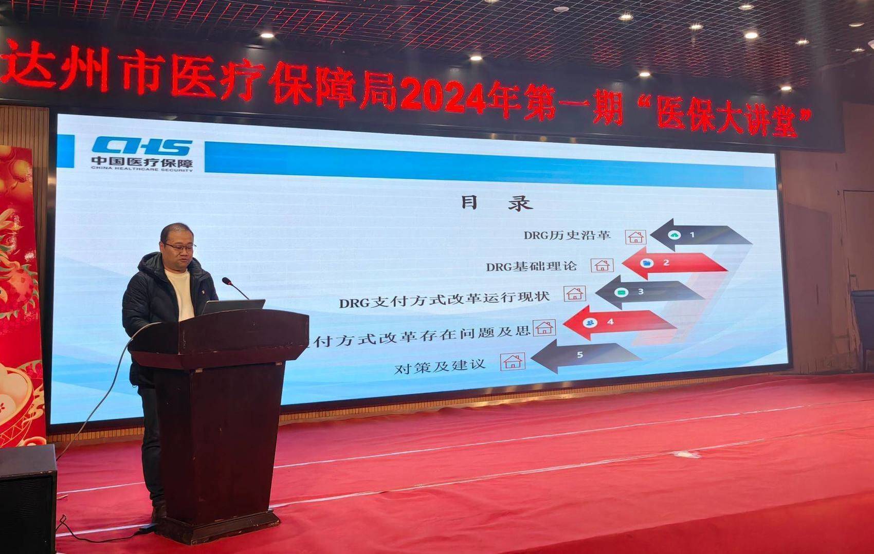 “不管医保政策如何改变,医保支付始终贯穿其中,医保支付如何更便捷?”2月28日,在达州市医疗保障局2024年第一期“医保大讲堂”上,达州市医疗保障事务中心副主任康丰以《浅析DRG(疾病诊断相关分组)支付方式改革及有关问题应对策略》为达州医保系统工作人员上了别开生面的一课。