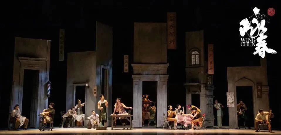 在舞台设计方面,《咏春》整体舞台采用三维布景形式,通过建筑性或雕塑性的立体布景创造舞台空间,通过舞者的表达与光影,推动叙事、突出人物。
