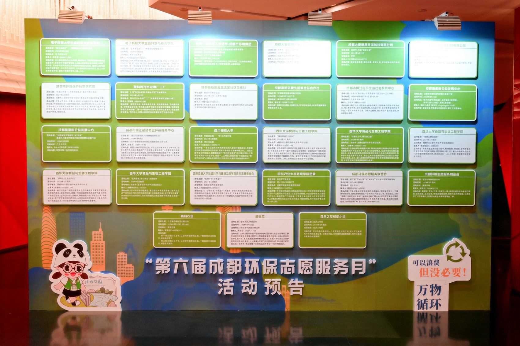 每年3月,是成都的“环保志愿服务月”。3月1日,第六届“成都环保志愿者日”暨“成都环保志愿服务月”启动,将为公众呈现上百场精彩纷呈的活动,其中包括首届成都都市圈生态环保志愿服务项目大赛、高校生态环境保护力量培育主题营“青E计划”、“公园城市校长生态说”生态文明思想中小学系列巡讲、绿色“U”我联合公益行动、环保设施向公众开放参访体验等品牌活动。