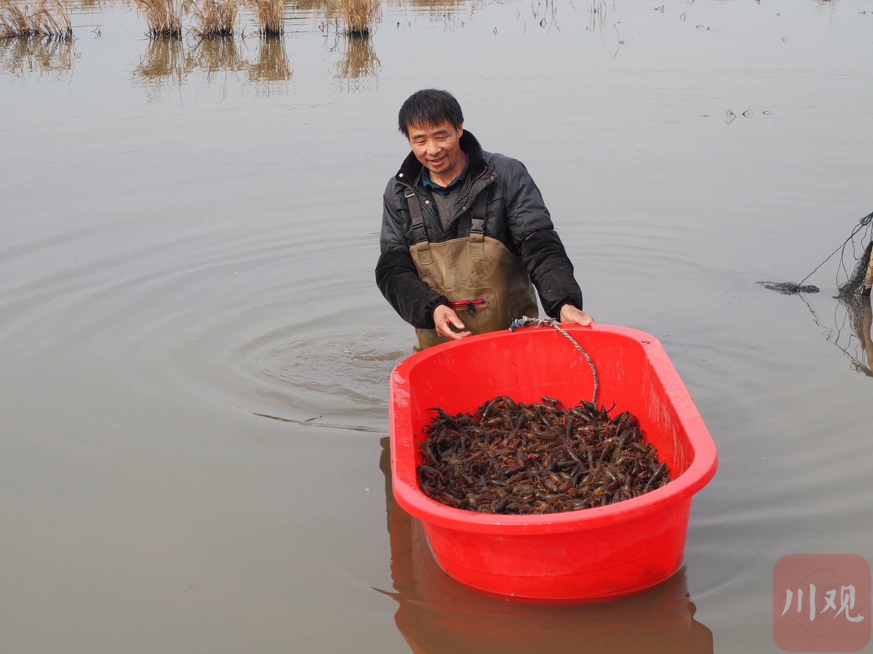 3月1日14时,宜宾市兴文县共乐镇,养虾大户周先华来到虾田准备起虾。当天有2000斤小龙虾订单,他要组织工人在天黑前起完虾,然后连夜分拣、称重、打包、装箱,凌晨就可以发往机场,一大早就可空运至南京、上海等城市,最大程度确保小龙虾的存活率和鲜活度。