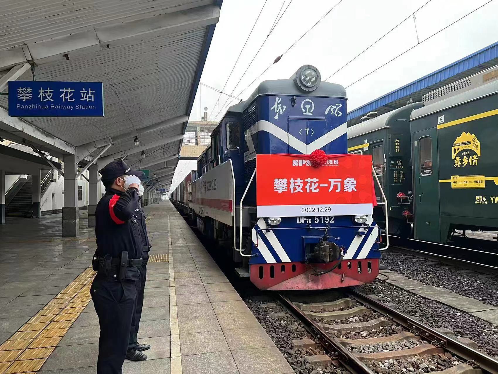 2022年12月28日,中老班列(攀枝花—万象)首发,这是新成昆铁路开通后的第一列以货车整列形式组织川货出川的国际货运班列。四川省港投集团供图