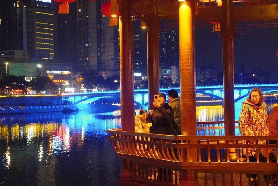 今年春节,流光溢彩的五通桥小西湖成为城市“热搜”,吸引游人纷纷前来打卡。“新市民”晋正茂陪着妻儿徜徉其间,深为自豪。