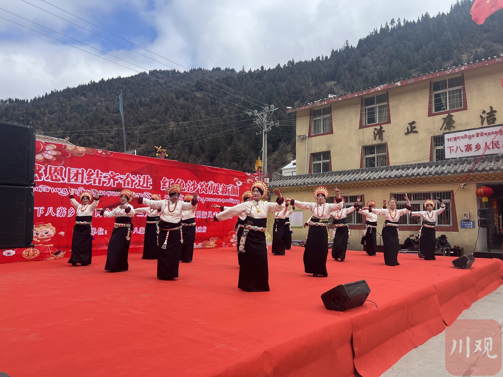 3月6日,松潘县下八寨乡政府院坝里热闹非凡,舞蹈《是时候报恩了》、歌曲《马背上的弹唱》、小品《乡村振兴》等精彩节目一个接一个,村民们身着节日盛装围坐在舞台前,时不时为精彩节目鼓掌喝彩。