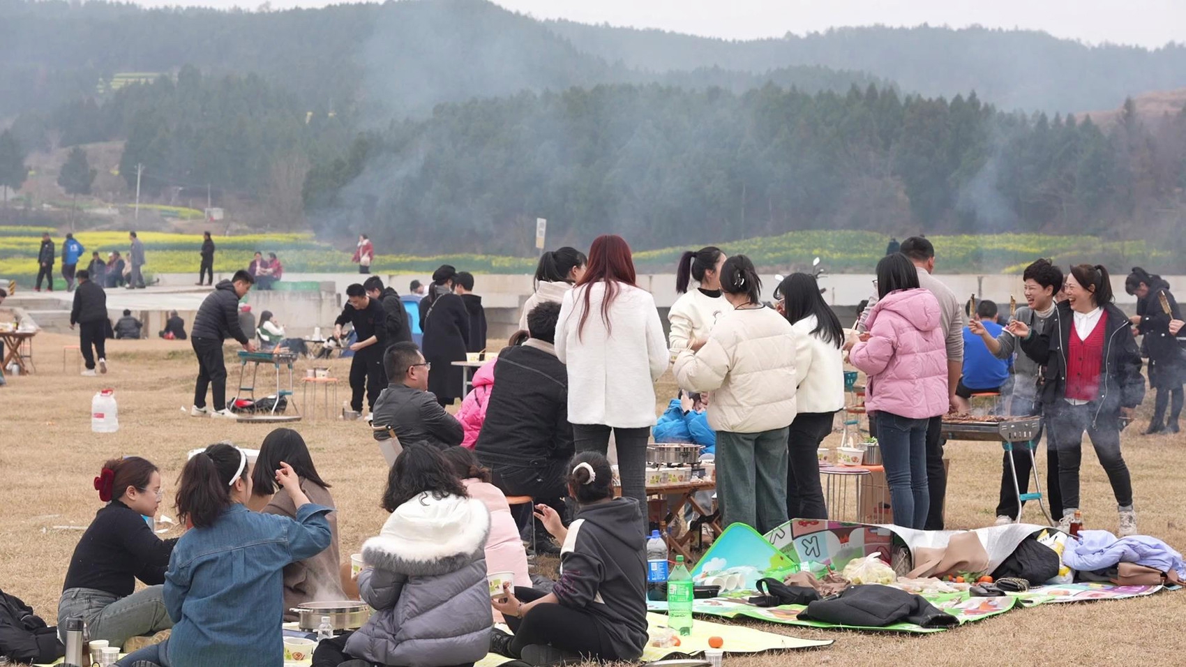 集中连片的油菜花不仅吸引了八方游客,也带火了当地乡村旅游,让农民家门口吃上“旅游饭”。据了解,目前,梓潼(玛瑙)鸭鹤岩油菜花节已经拉开帷幕,当地还在周边设置了露营区、美食长廊等。