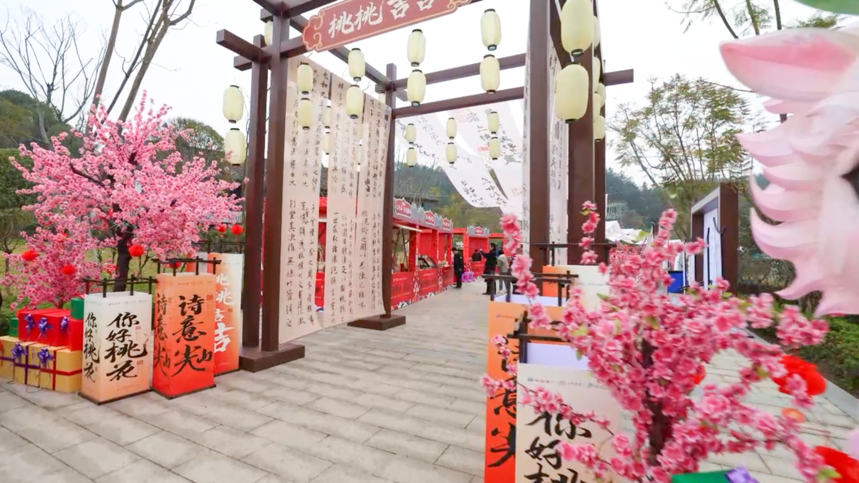 在“桃花诺”版块中,打造“大唐风情体验区”,游客在此不仅能够参与投壶、灯谜、套圈、剪纸等互动游戏,还能欣赏到“桃花诺”演艺节目;“红雨谣”版块打造一座“流金岁月迷宫”,将自流井历史记录展与迷宫相结合,寓教于乐,成为亲子家庭好去处;“回春丹”版块中,最吸引人的当属“时光回溯馆”,通过不同年代物品的展示,让游客不仅体验到尖山桃花会的历史变迁,更可以把承载着“小时候记忆”的文创品带回家。