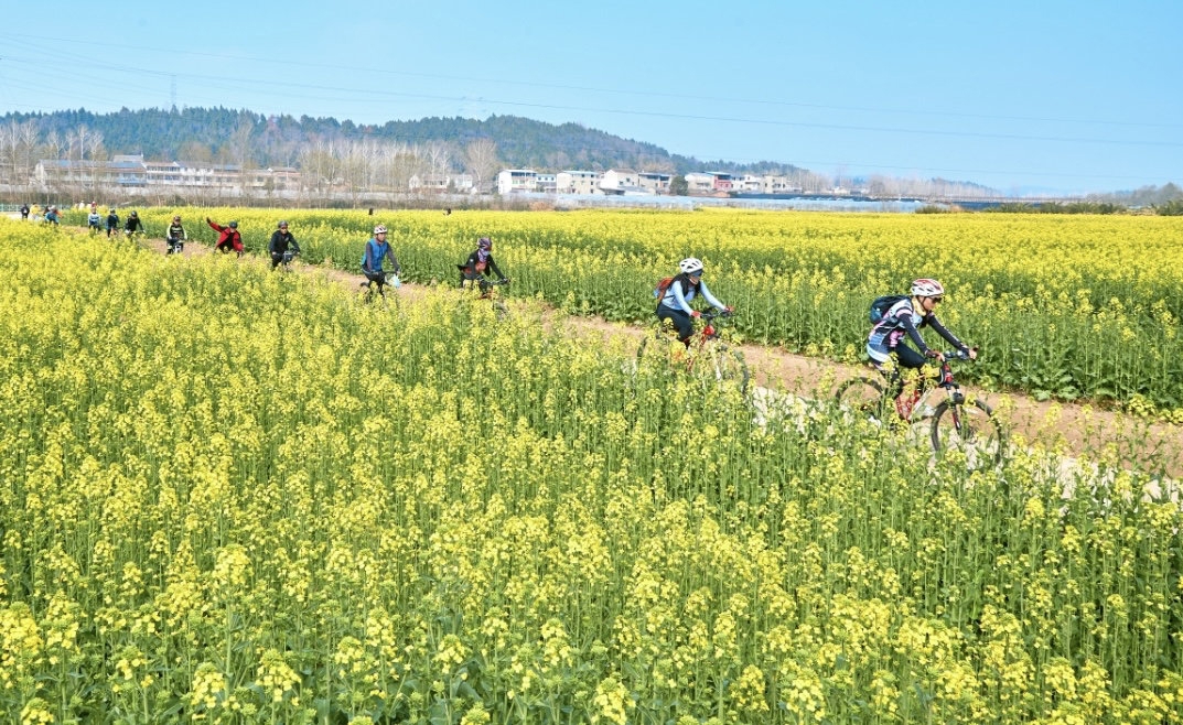油菜花田里吃火锅、绿道骑行中赏花海。3月11日,绵阳市游仙区2024“春之歌”赏花季暨第四届油菜花节在新桥镇王家坝村开幕。一望无际的“金色花海”吸引了大批游客打卡、拍照,新桥镇17000余亩油菜花成乡村旅游新景点。