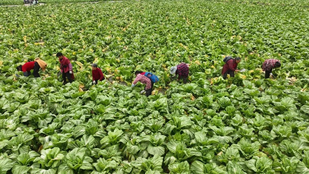 崇礼镇农田中的收菜场景。江良文 摄