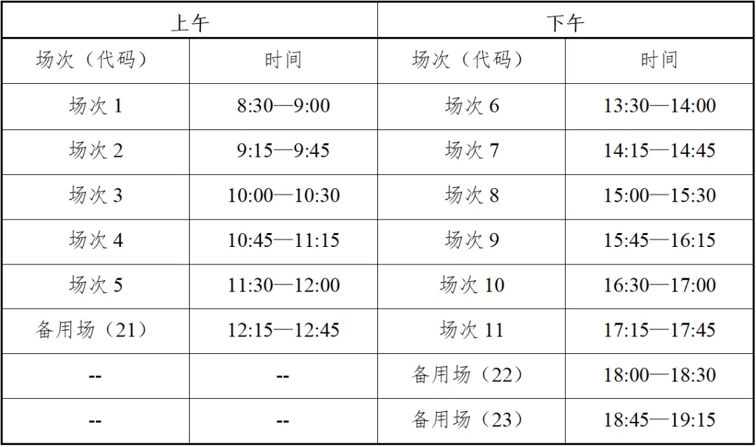 口试∶英语四级口语考试(CET-SET4)考试时间为5月18日(F241次),英语六级口语考试(CET-SET6)考试时间为5月19日(S242次)。具体场次安排如下: