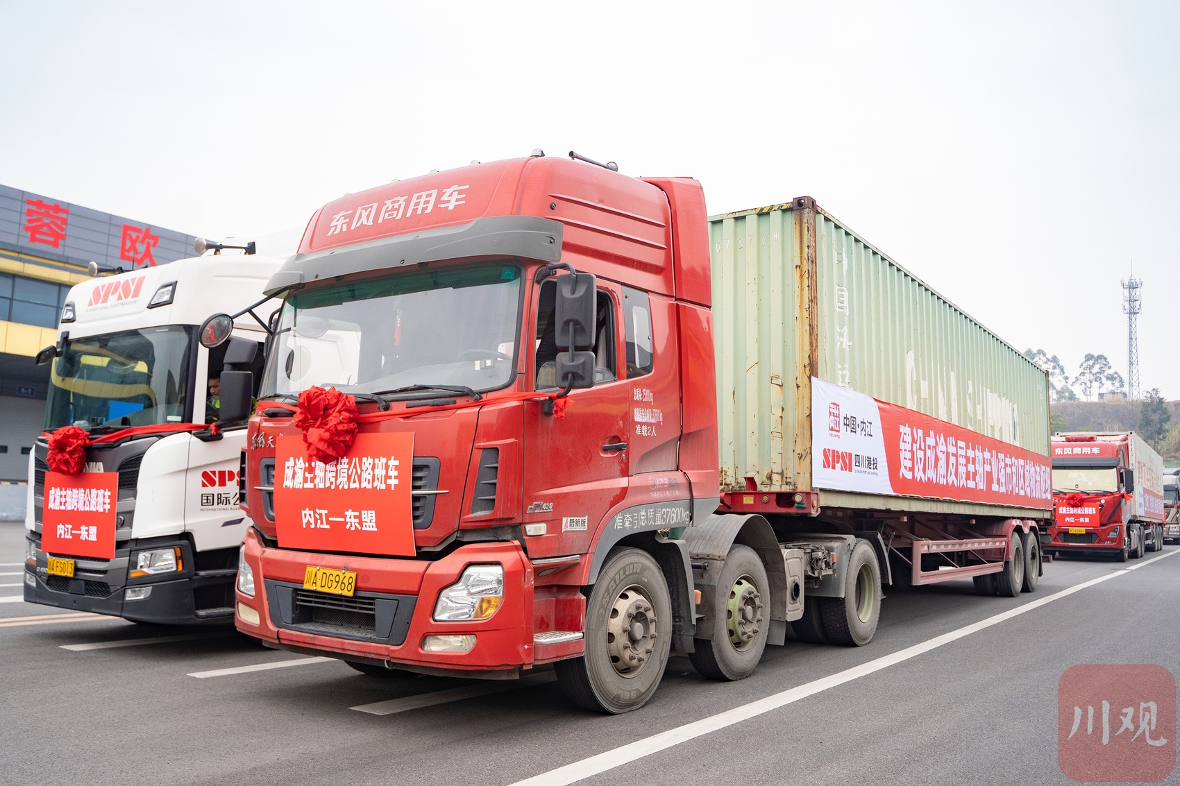 6辆“成渝主轴跨境公路班车(内江—东盟)”从内江国际物流港启程。唐广 摄