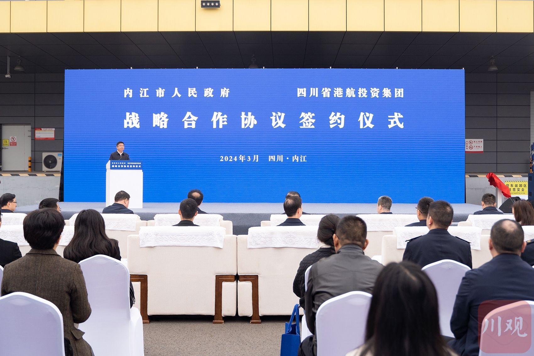 内江市人民政府与四川省港航投资集团及其下属公司签订合作协议,双方将在西部陆海新通道国际班列(内江)集结中心、成渝主轴跨境公路班车集结中心等方面进行合作。唐广 摄