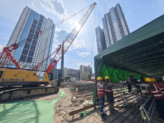该项目由成都航空新城建设发展有限公司投资建设,总建筑面积约为174699平方米,其中地上建筑面积约为132286平方米,地下建筑面积约为42413平方米。“目前项目处于基坑作业阶段,有百余名工人在施工。”施工人员介绍,基坑作业总共分为三个阶段,第一阶段为基坑支护桩施工,第二阶段随土方分层开挖,逐层进行基坑侧壁支护及内支撑施工阶段,第三阶段主要进行内支撑以下的土石方开挖及基坑侧壁支护工作,每个阶段都明确了预计的施工进度以及效果图,这样在视觉上就能看到明显进度变化。