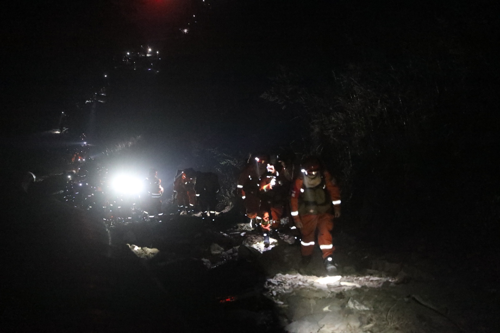 远处高山上,红色的火线不断蔓延,漆黑夜色中,强光手电照亮山路。3月18日凌晨2时许,四川森林消防多支队伍带齐装备,徒步向雅江山火3号火场前进。