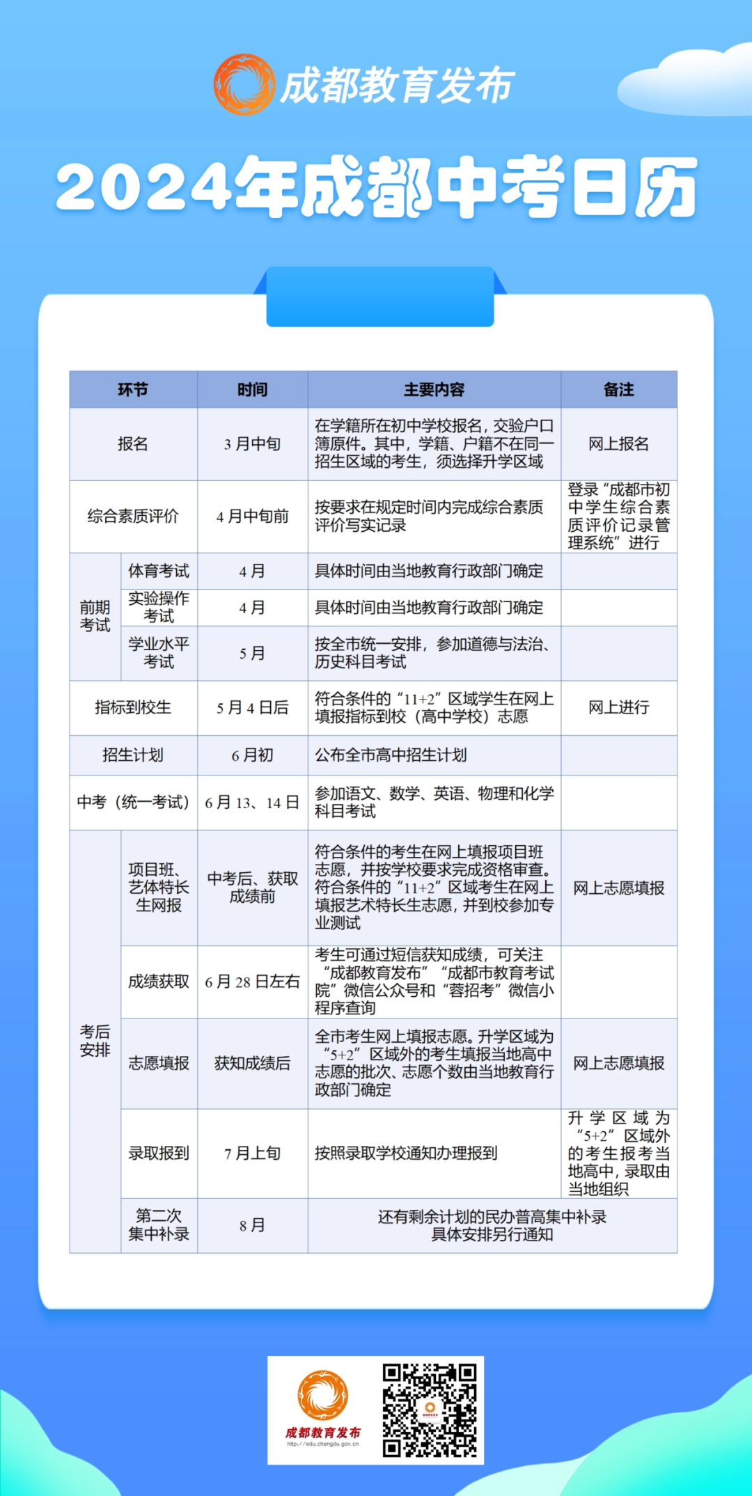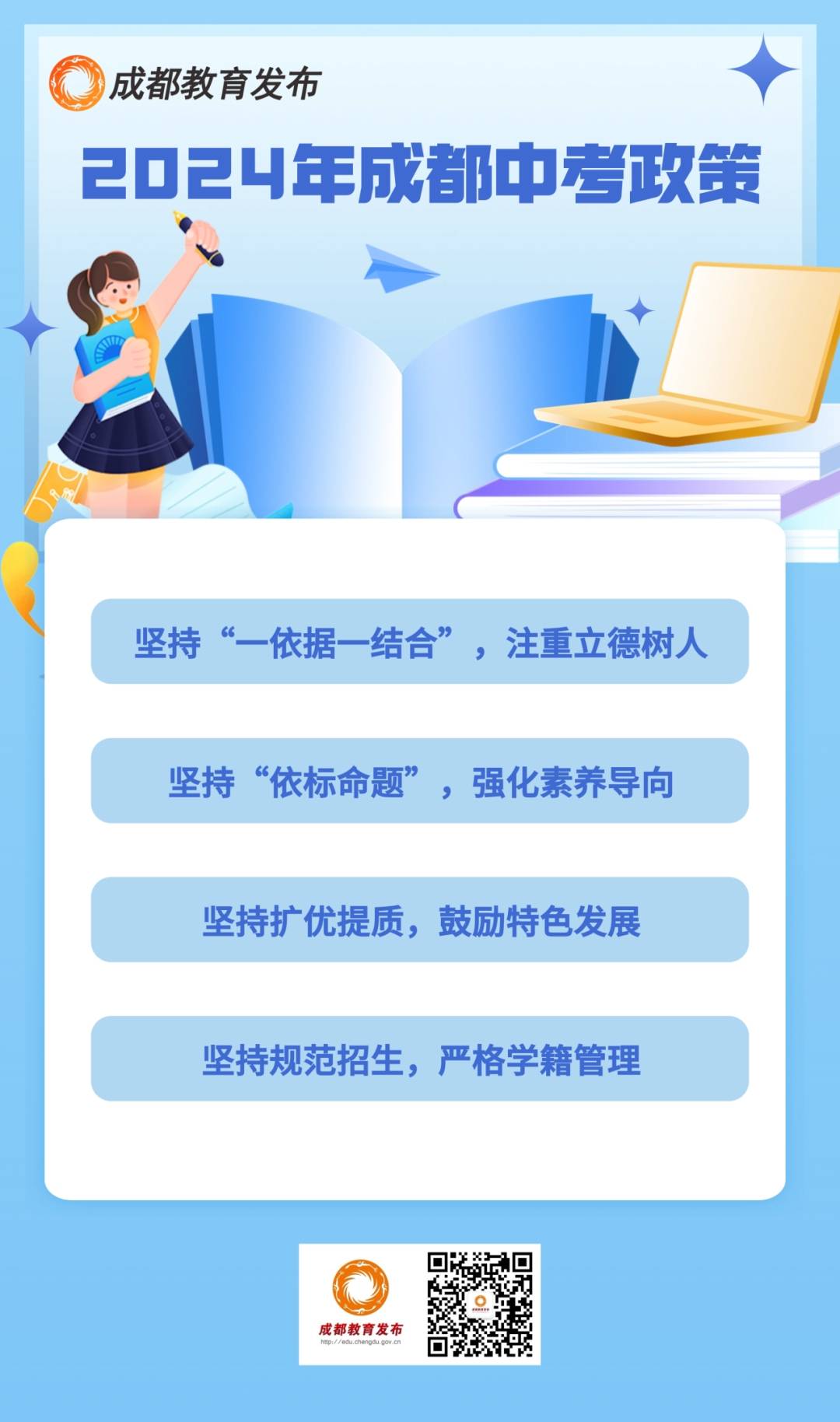 近日,成都市招考委、成都市教育局印发《2024年成都市高中阶段学校统一招生考试工作实施规定》,明确提出深化四个坚持,进一步完善“依据学生学业水平考试成绩、结合综合素质评价”的高中阶段学校考试招生录取模式。
