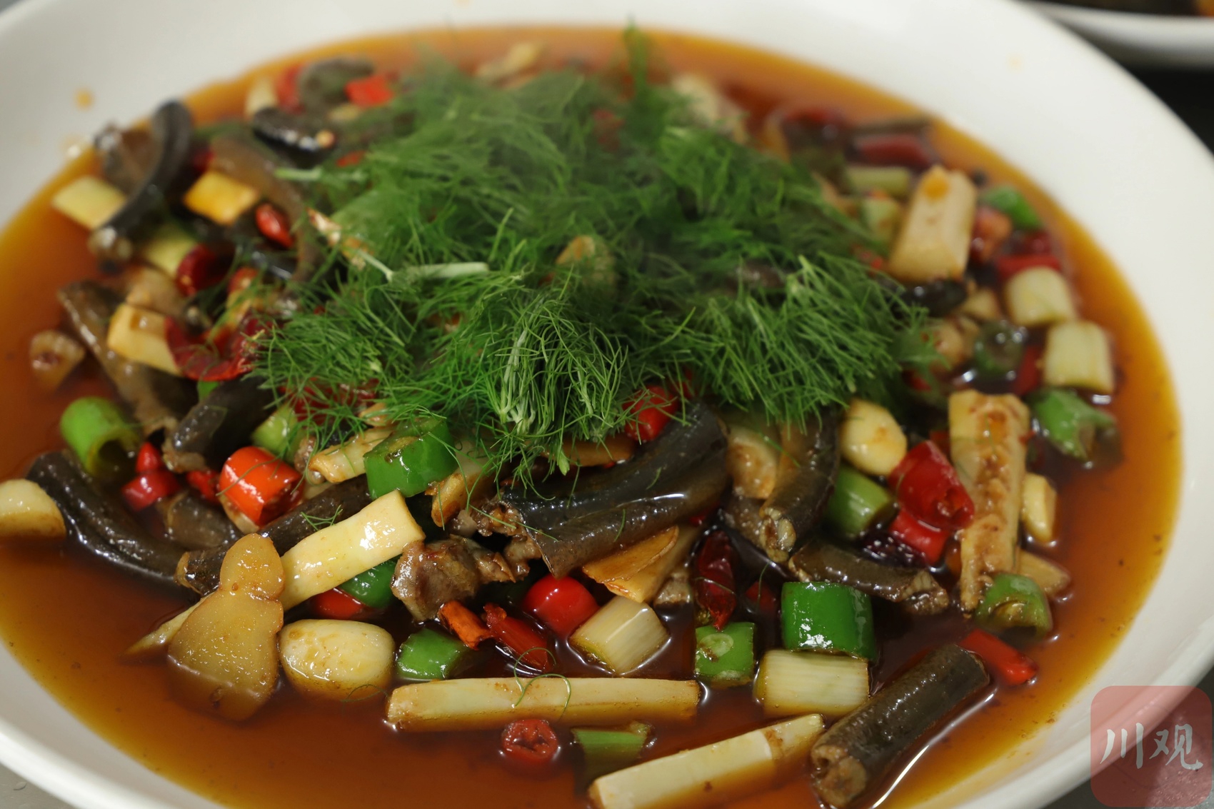 苦笋烧黄鳝也是宜宾人公认的下饭菜之一,苦笋和黄鳝在锅中不停翻炒,肉和笋的鲜味完美融合在一起,苦笋作为配菜由于烧的时间略久,自带的苦味散去不少,吃起来又香又脆。