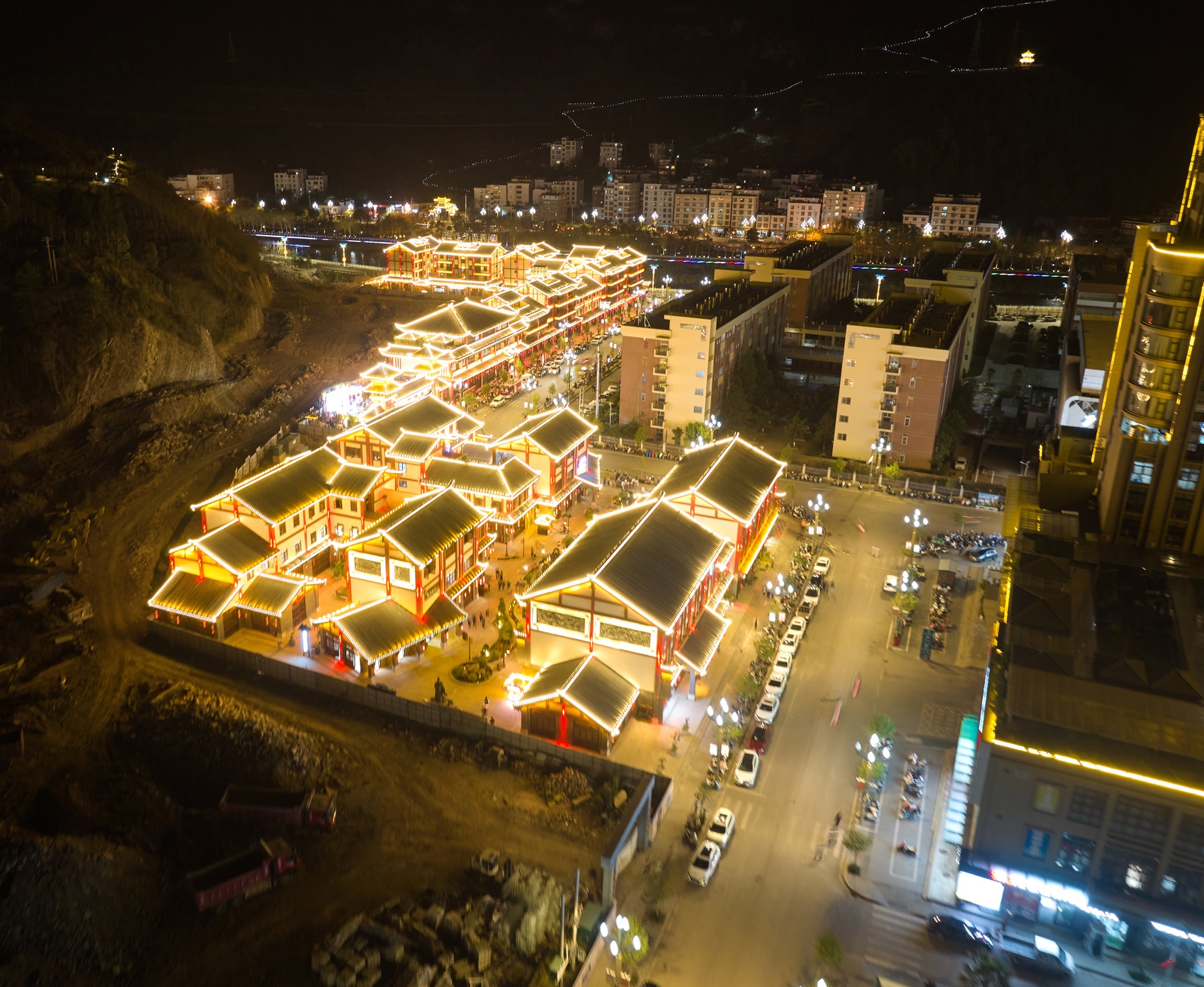 清甜巷文化步行街位于会东县新旧老城交汇之处,毗邻鲹鱼河,背靠獭猫山,与廊桥隔山对望。走进清甜巷,扑面而来的是浓浓的文化味和满满的烟火气,古街巷里流光溢彩,美轮美奂,飞檐斗拱、高楼低阁,仿佛瞬间穿越大唐盛世。店铺的门头和牌匾古色古香,小吃馆、特色产品店、民宿林立,现场游人如织,美食丰富。