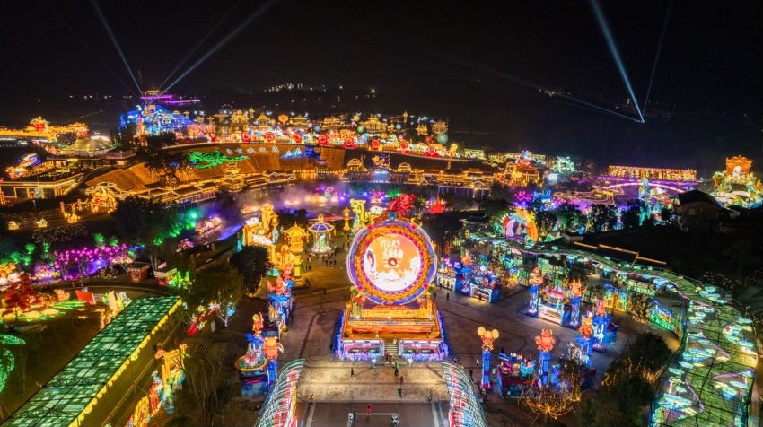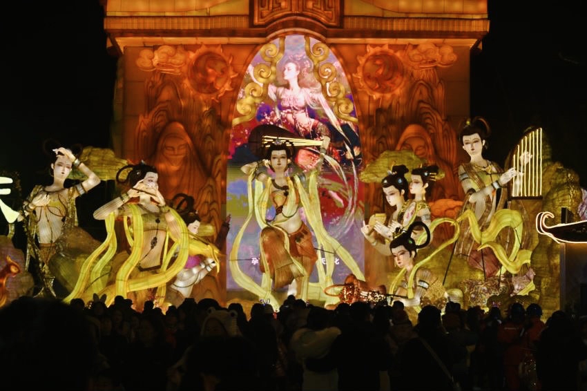 第30届自贡国际恐龙灯会以中华文明为主线,分为“华夏乐章、盛世欢歌、年味中国、浪漫中国”四大主题板块,创作推出“文明伊始”“孔雀灯”“非遗中国龙”等1000余个美轮美奂的灯组,生动讲述5000年中华文明历史演进的精彩故事。将人造革、白铁皮、塑料瓶等近30种特殊材料运用到灯组制作之中,体现自贡灯会“万物皆可成灯”的特性,同时灯组大量使用AI、AR、3D打印等技术,实现与游客的互动。同时,全园区360度“主舞台+点位+行进时”演艺新场景,设置了斗灯、杂技、民俗快闪、新潮国乐等表演。文创产品也是创自贡灯会举办以来数量和品质之最,有本届灯会主题文创、“恐龙十三太保”文创和“盐龙灯”文创,让彩灯变成“可以带走的文化”。