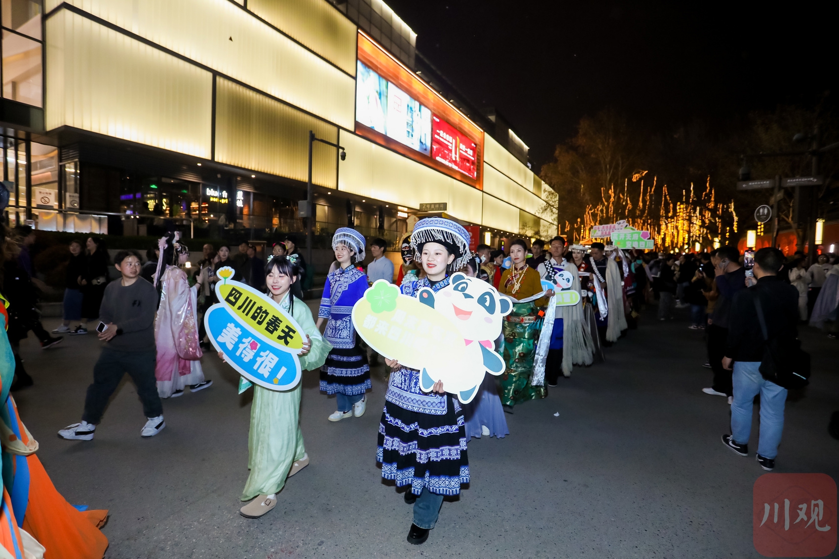 3月22日晚,代表竹文化、苗文化等宜宾“汉苗民族服饰融合秀”巡游团组亮相大唐不夜城西安文旅地标,与全省兄弟市州一起开启了一场“春日漫步·蜀你最美”主题巡游活动,彰显宜宾特色文旅资源以及包容、多元的城市气质和“民族团结一家亲”的美好图景。