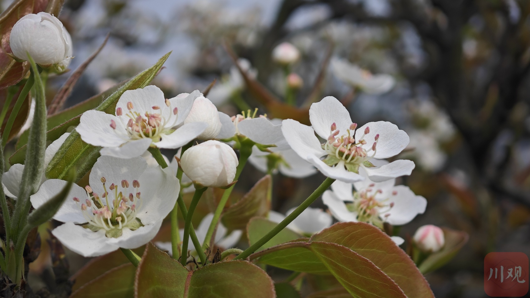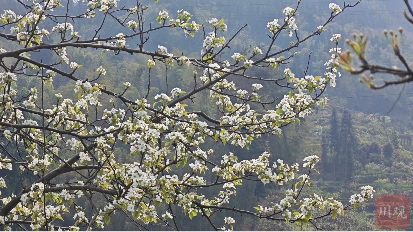 在佛来山上,放眼望去,白白的花朵如雪如玉,微风拂过,花枝迎风摇曳,淡淡的梨花香气四溢,令人沉醉。而舞台上,川剧、舞蹈、魔术……一个个精彩节目轮番登台,吸引了众多村民和游客的目光,现场游人如织。