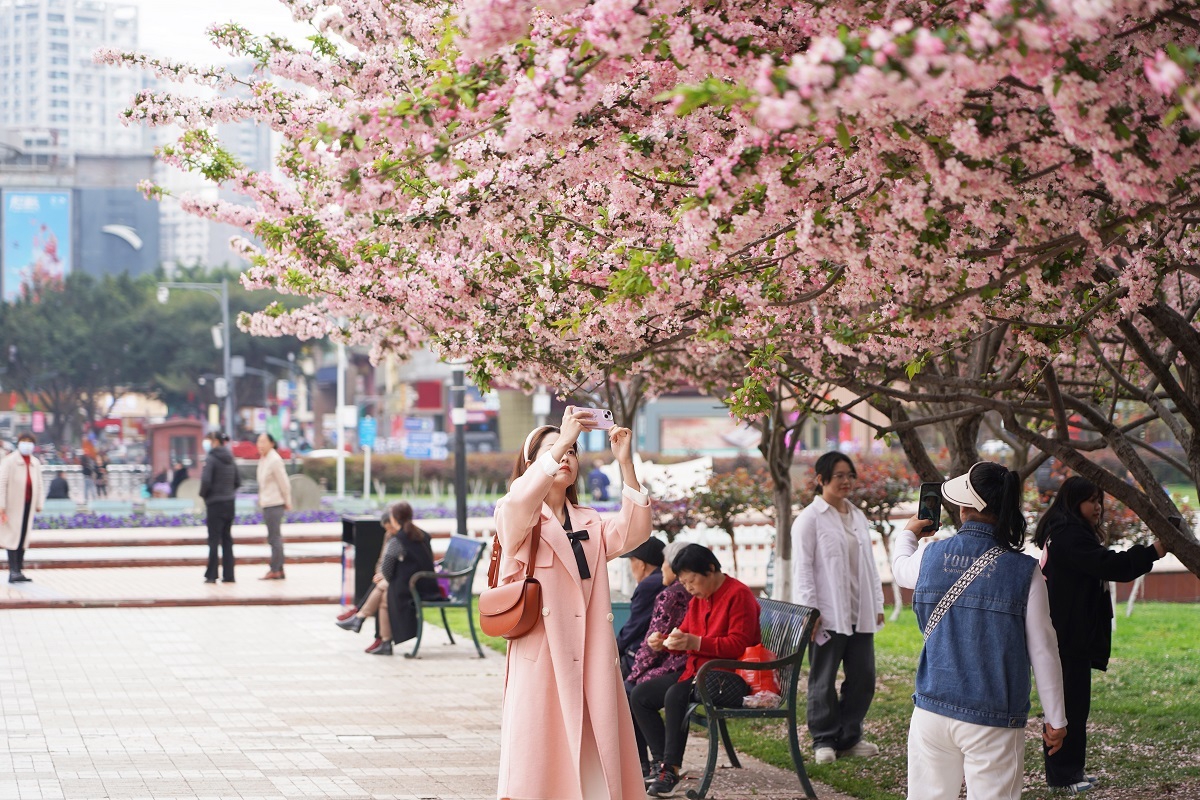 市民拍照打卡盛开的垂丝海棠花(三)