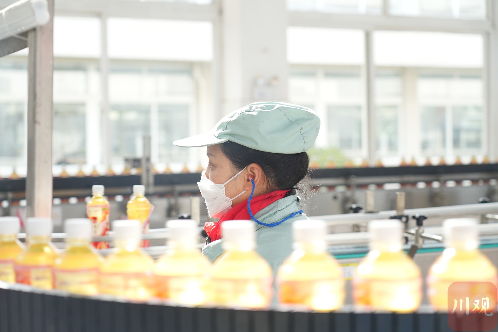 广元饮料企业生产车间,工作人员正在检查饮料生产情况。高志农 摄