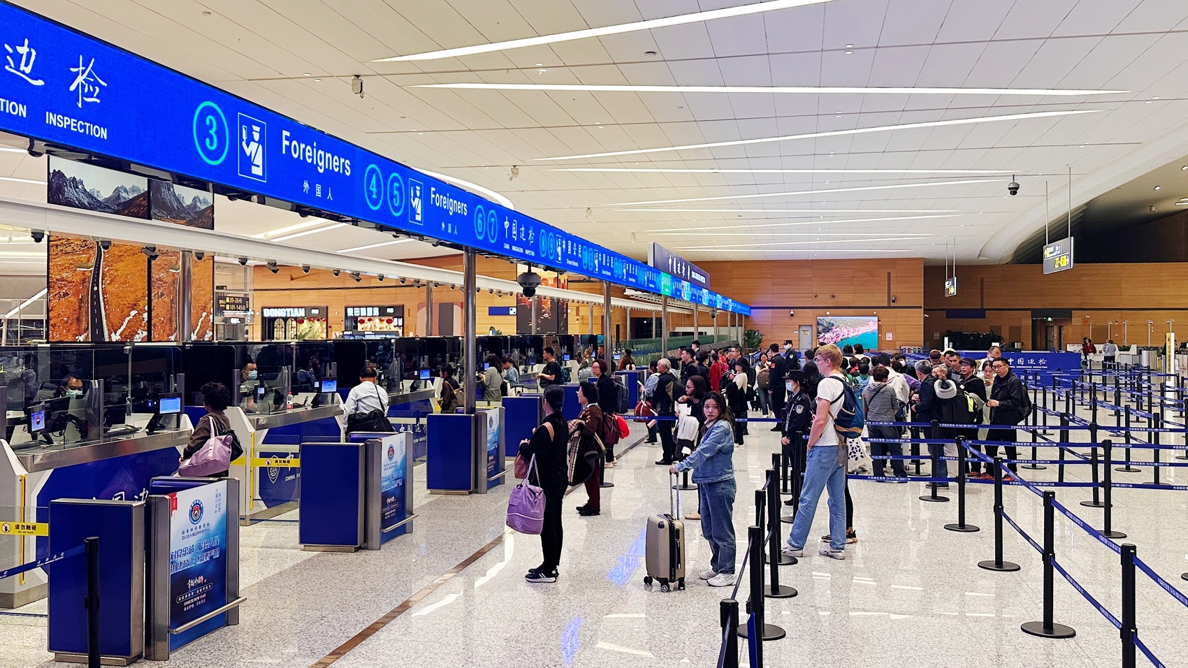成都出入境边防检查站相关负责人介绍,随着出入境政策的持续调整优化和口岸国际(地区)航线航班的复航新开加密,中外人员往来更加便利,经天府国际机场口岸来华经商、旅游、探亲访友和过境的外国人数量稳步上升。一年来,成都边检站共查验入境外国人65万余人次,为1.6万余名外国旅客签发了24/144小时临时入境许可,超3.6万名旅客免办边检手续直接过境中转前往第三国(地区),成都国际航空枢纽能级进一步提升。