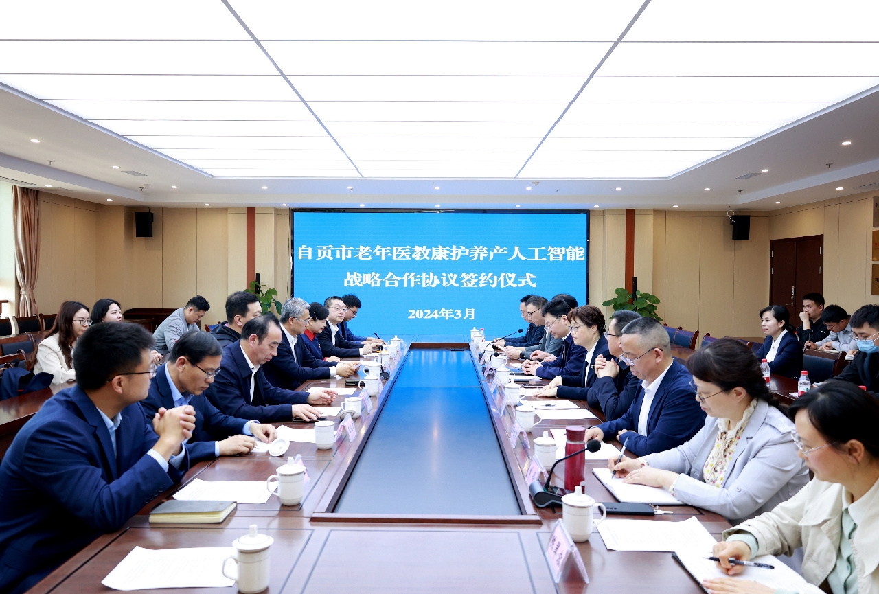 3月28日,自贡市老年医教康护养产人工智能战略合作签约仪式在西南医科大学附属自贡医院·自贡市精神卫生中心举行,挂靠在自贡市精神卫生中心的自贡市脑科学研究院、电子科技大学人机智能技术与系统教育部工程研究中心、四川大学华西医院护理学四川省重点实验室、四川卫生康复职业学院运动与健康创新研究中心、贡井区人民政府共同签订《自贡市老年医教康养产人工智能战略合作协议》。