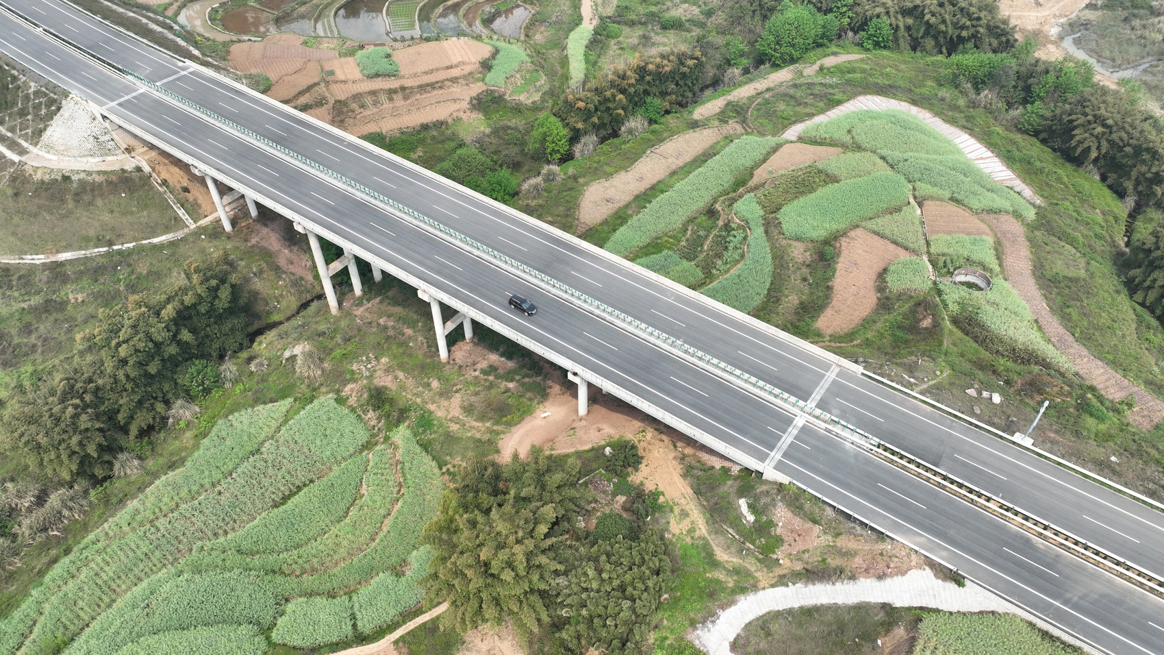 国道353线宜宾经南溪至泸州快速通道全长69公里,采用一级公路技术标准建设,设计速度60公里/小时,双向四车道。其中,宜宾南溪段22公里,于2022年底建成通车,泸州段18公里在去年底建成通车。此次通车的宜宾江安段,长度29公里,是这条快速通道的最后一块拼图,贯穿江安经开区和阳春镇18个村组。