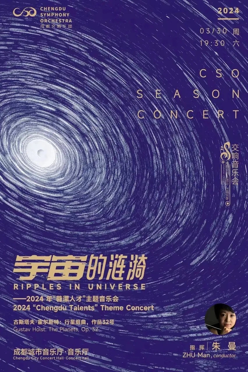 本次音乐会由国家一级指挥、中央歌剧院常任指挥朱曼执棒,千风合唱团献声,为成都观众带来了古斯塔夫·霍尔斯特的《行星组曲》(作品32号)。这部作品以其独特的音乐语言,描绘了太阳系中各个行星的神秘与壮丽,将观众引入了一个充满想象的宇宙世界。