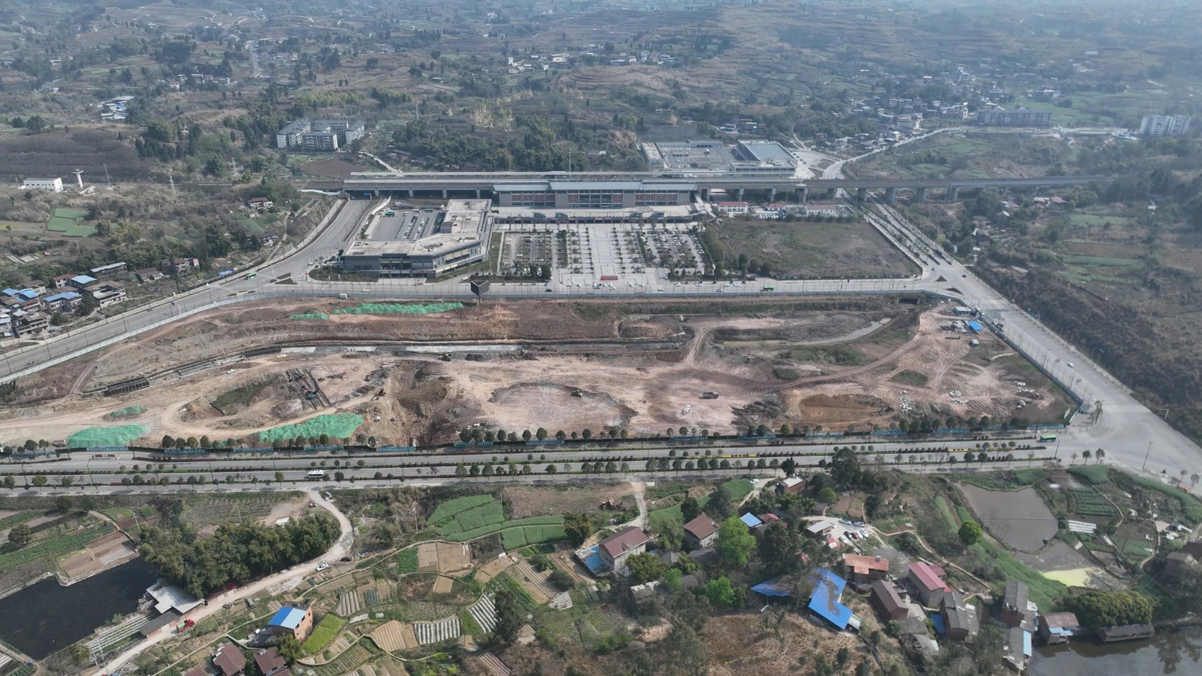 3月28日,在成渝高铁资中北站站前广场对面,资中县鸳鸯湖体育公园项目正在紧张施工,挖掘机、推土机、运渣车来回穿梭,工人们各司其职,各项工序稳步推进。