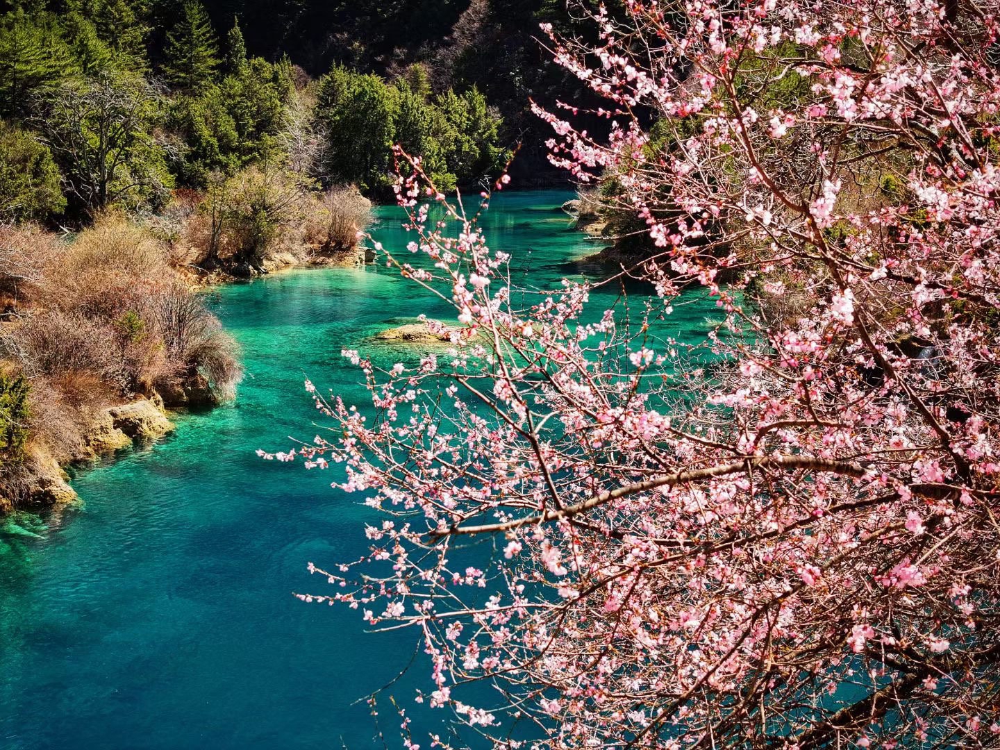 进入4月,川西高原迎来好春光。九寨沟景区满山遍野的野桃花迎来盛放期,山林间、海子畔,粉红色的野桃花点缀着九寨沟的山山水水,如诗如画的美景,成为这个时节最美的看点。
