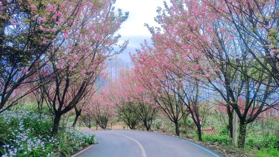 在双山村的山野里,绽放的樱花簇簇相拥。“四月是赏樱好时节。”据乐山市沙湾区轸溪镇相关工作人员介绍,此次樱花节保留了花朝节迎花神这个传统活动,同时开设了水上乒乓、盲人摸象等趣味游园活动,还邀请了多名书画志愿者现场展示书法绘画。