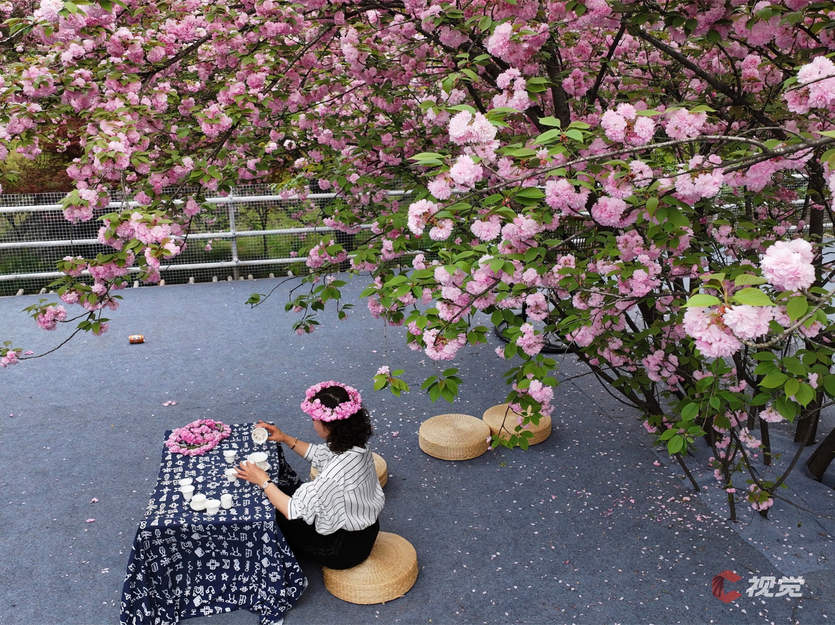 樱花公园,游客正在树下喝茶拍照。C视觉摄影师 朱志宏