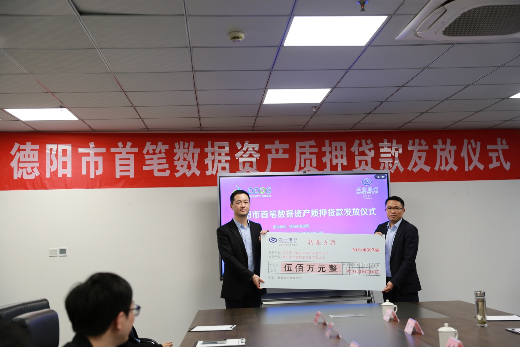 兴业银行成都分行以该项数据资产作为贷款质押标的物,仅一个月左右时间,就为企业提供授信额度500万元并由兴业银行德阳分行全额落地。“对数据这种无形资产通过估值进行质押、放贷,这对于我们银行来说是一次业务的探索和创新,也有效拓宽了企业的融资途径,助力企业点‘数’成金。”兴业银行德阳分行党委书记、行长唐坤凡表示,贷款的发放意味银行认可了数据资产的价值,作为质押物,当企业无力偿还贷款等极端情况发生时,银行可对其进行处置。